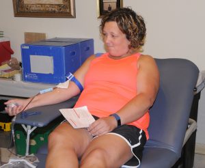 Tarkio Rehabilitation and Health Care was host to a Community Blood Center Blood Drive Thursday, July 12, 2018. The blood drive had a fantastic turnout with over 40 individuals donating, including Dewey King, Melanie Lucas, and Mark McMahon.