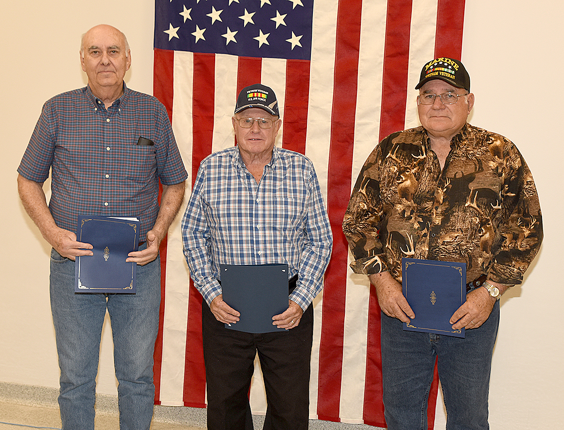 Ralph Greer American Legion Post #49 recognized Legion members for 50 plus years of membership at a dinner Monday, November 11. Elmer Davis, left, and Tony McKenney, right, were recognized for 50 years of membership. Danny Herron, center, was recognized for 51 years of membership.