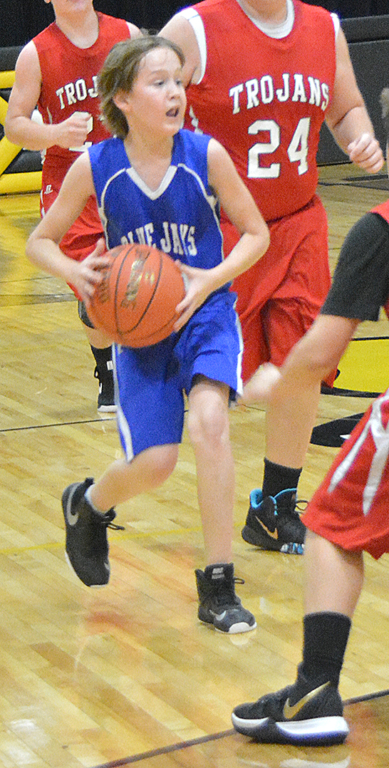 Dalaynie Drummond dribbles down the court in the East Atchison junior high win over West Nodaway in the South Holt Tournament.