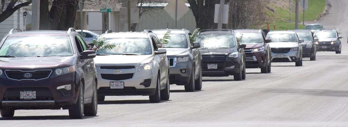 Rock Port churches joined together to recognize Palm Sunday, April 5. A parade of cars drove up and down Main Street with participants waving palm branches and making joyful noise.