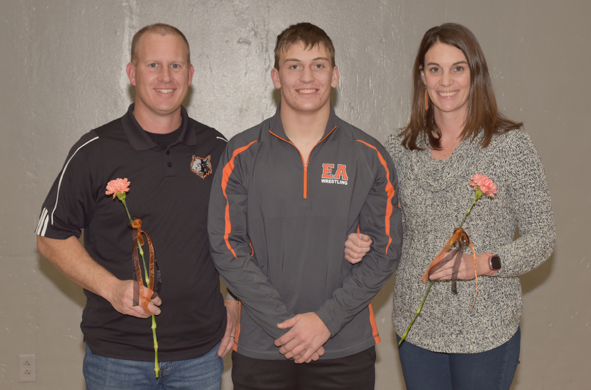 The senior wrestlers and their parents were honored. They included: Bo Graves, son of Rachel and Danny Graves; Aaron Schlueter, son of Ann and Matt Schlueter; and Braiden Wennihan, son of Tanya Riley and Tricia and Allen Wennihan.