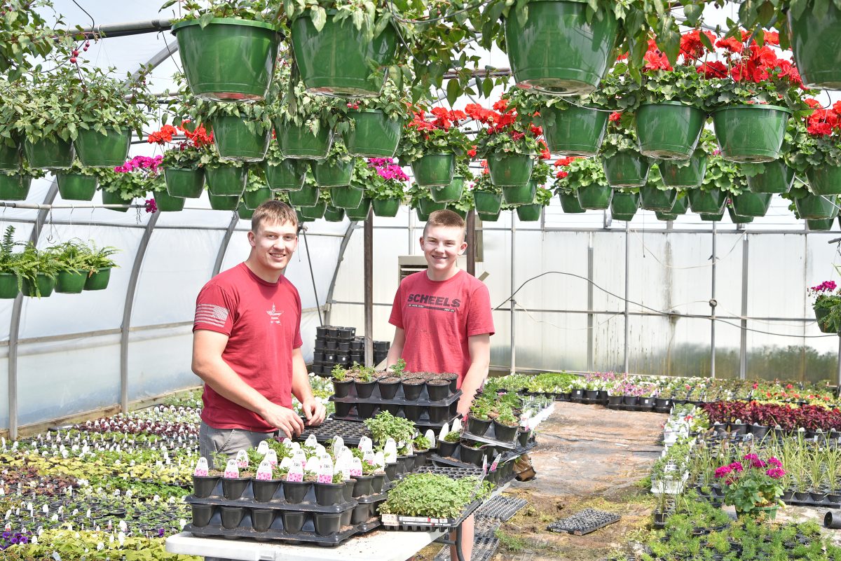 Hurst Greenery held its open house Saturday, April 16, 2022. Located northeast of Tarkio, the greenhouses provide a huge selection of flowers and plants for your gardens, trellises, yards, or front porches. Pictured below are two of the Hurst grandchildren, Aaron Schlueter and Gabe Harms, getting some of the pots ready for display.