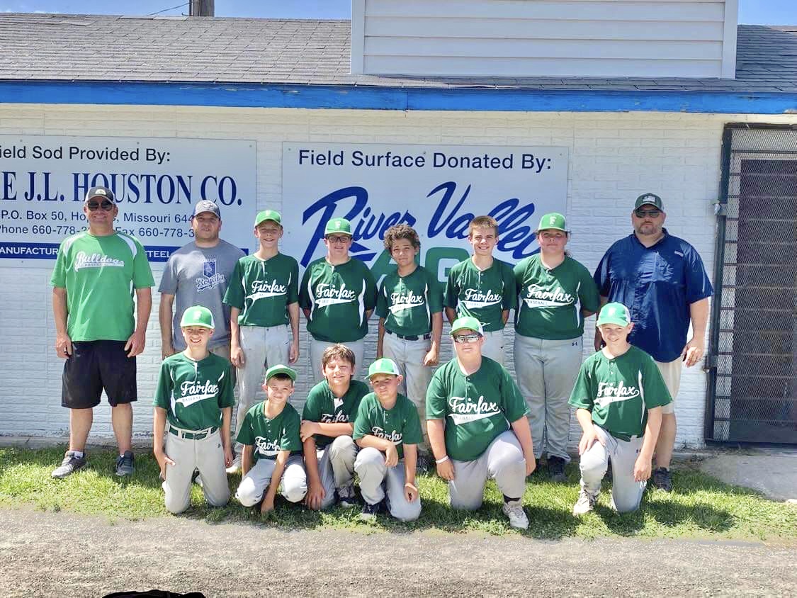 Fairfax Pints team members include, from left to right: front row – Evan Rogers, Damon Drummond, Ben Umbarger, Alex Wintz, Zander Grossman, and Knox Oswald; and back row – Coach Chris Smith, Coach John Wintz, Mack Smith, Jaxson Smith, Brady Umbarger, Henry Smith, Carly Graham, and Coach Ben Rogers. Riley Koop is not pictured. (Ginny Smith photo)