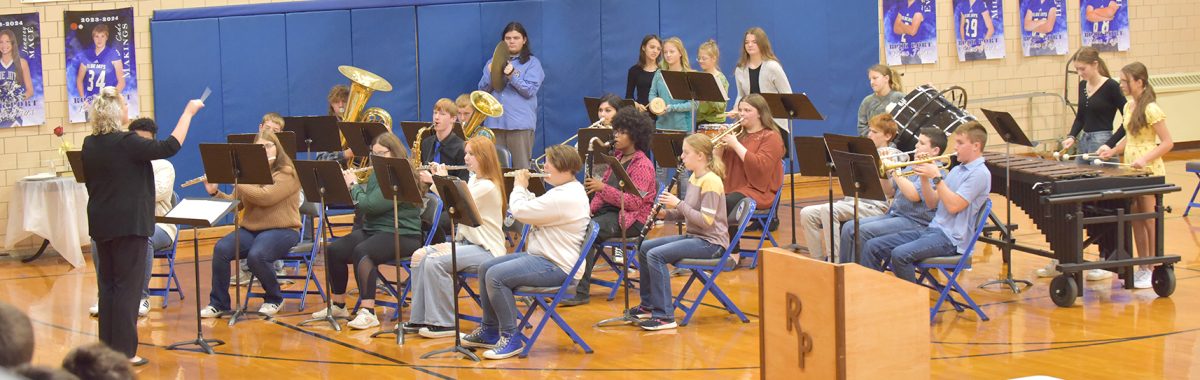 Mrs. Abby Palmer and the high school band performed a military medley honoring all the branches of the military.
