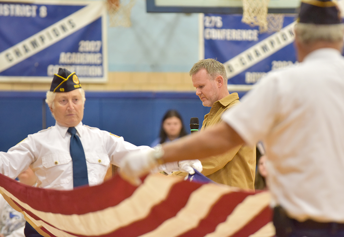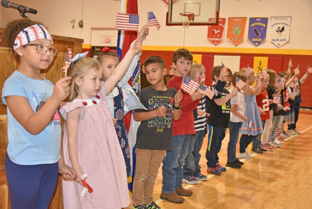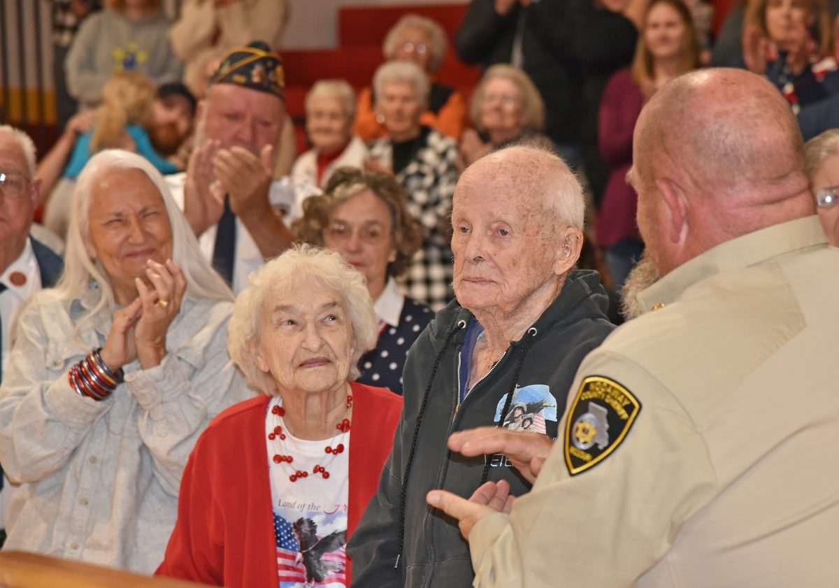 Tarkio High School hosted local veterans and members of the community at a Veterans Day Assembly Friday, November 10, 2023, in the high school gym. The kindergarten class sang the “Veterans Day” song and then handed out handmade thank you cards to the veterans in attendance.