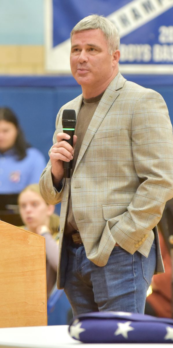 Retired Captain Scott Pfeifer was the guest speaker during the assembly. Scott is originally from Burlington Junction, Missouri.