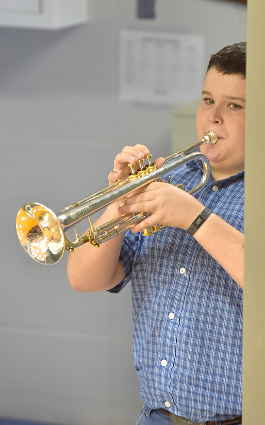 Brandon Athen played one part of “Taps.” He and Mrs. Palmer performed a trumpet duet at the end of the ceremony at Rock Port High School.