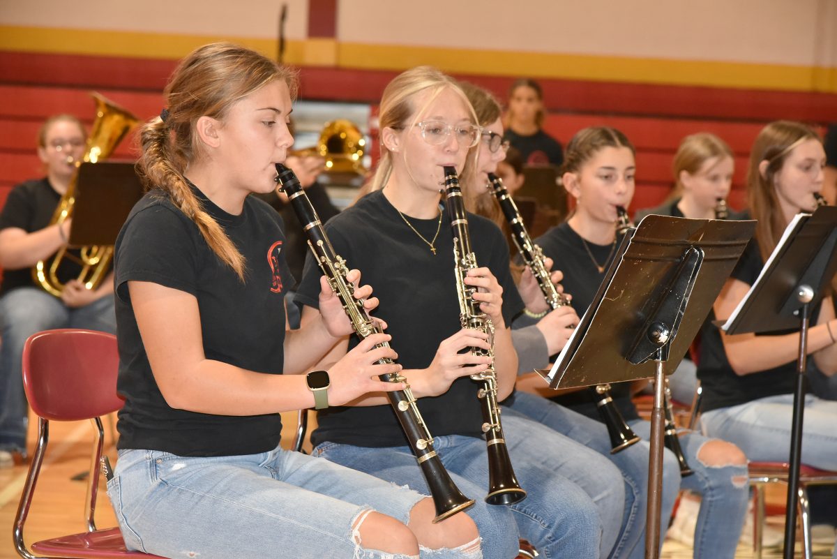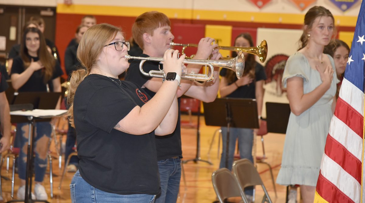 The Tarkio High School Band performed “The Star Spangled Banner” and the “Armed Forces Medley” for those in attendance at the Veterans Day Assembly.