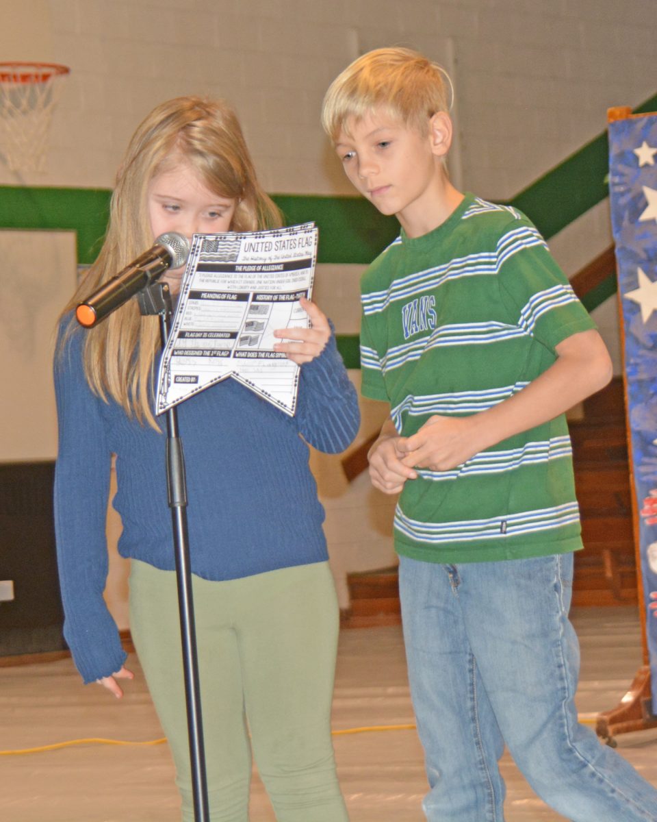 The third graders talked about the American flag at the Fairfax Veterans Day Assembly.