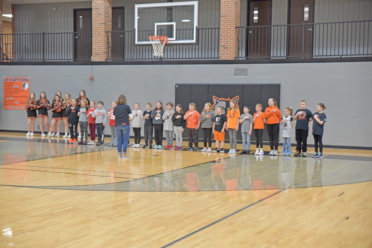 The Tarkio Elementary 3rd graders sang the “The Star Spangled Banner” before the start of the East Atchison vs. Rock Port basketball games Friday, February 9, 2024.