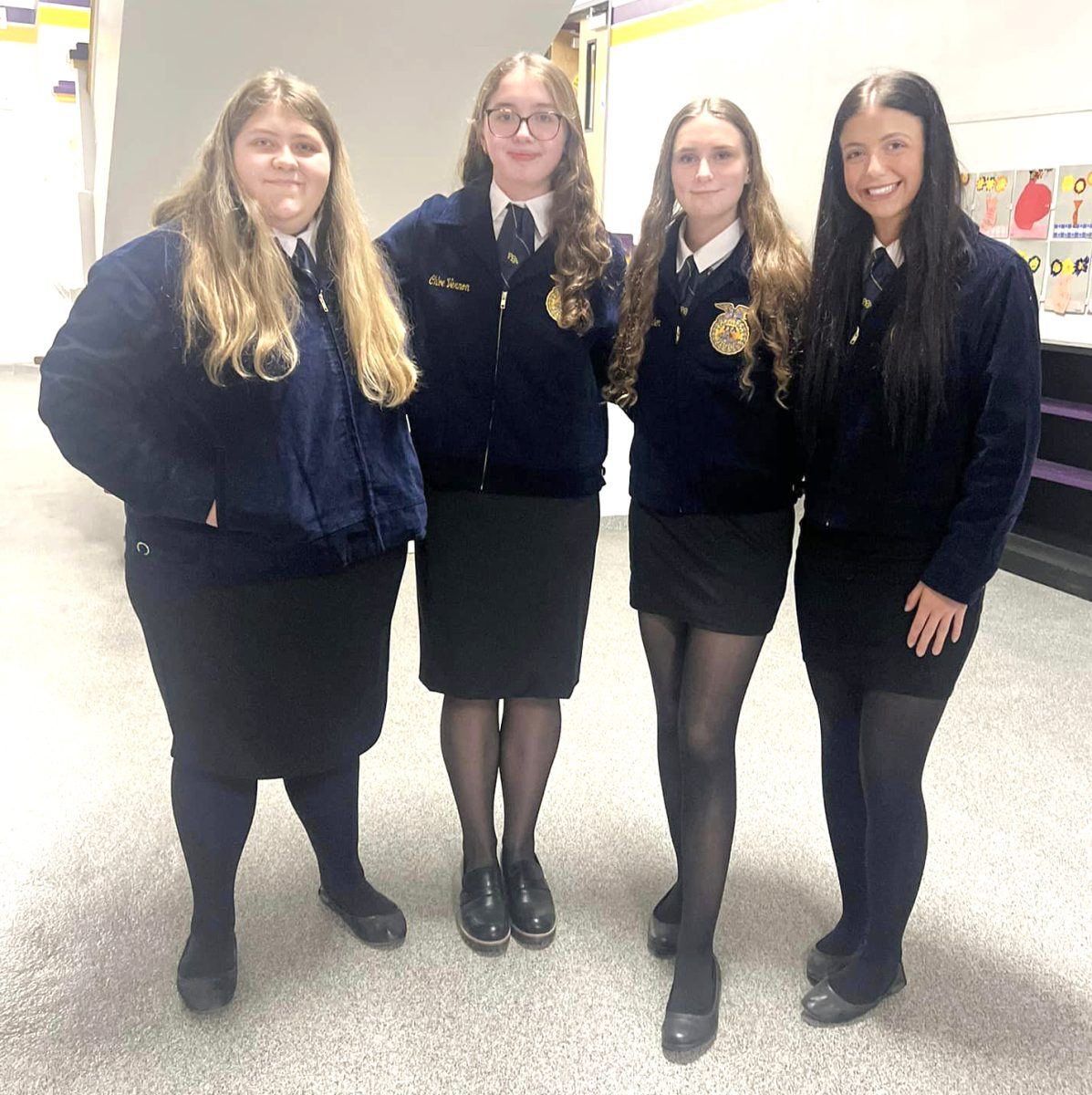 Fairfax FFA members Lexi Brown, Chloe Vernon, Anna Ohlensehlen, and Charlie Smith participated in the Mound City Alumni and Supporters LDE March 4. (Fairfax FFA Facebook photo)