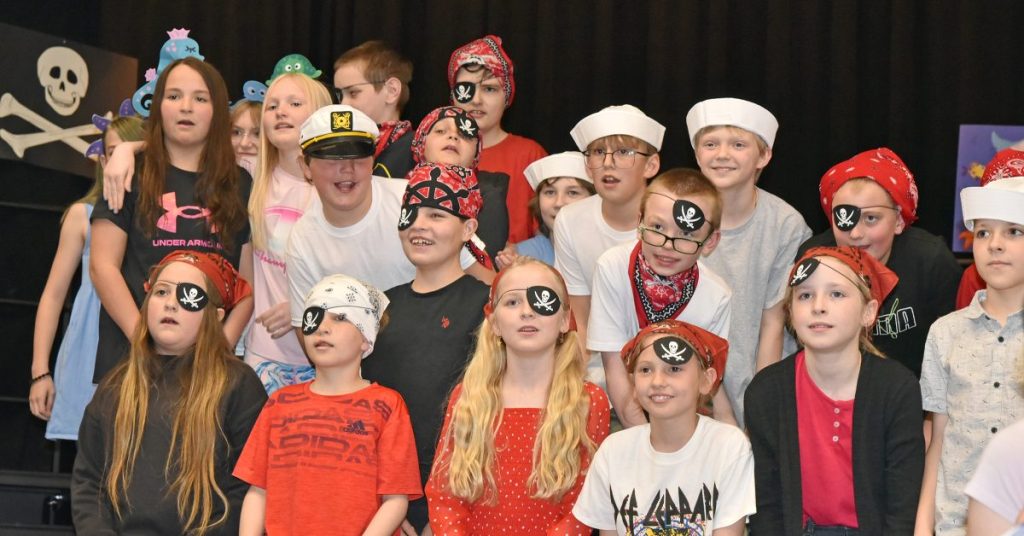 The Tarkio 4th and 5th graders entertained family and friends with the musical performance of “The High Seas: Let’s All Set Sail” at the Tarkio High School Auditorium Friday, April 12, 2024. Pirates, sailors, sea creatures, and mermaids shared their adventures on their way to the Annual Sea-Faring Singing Contest.