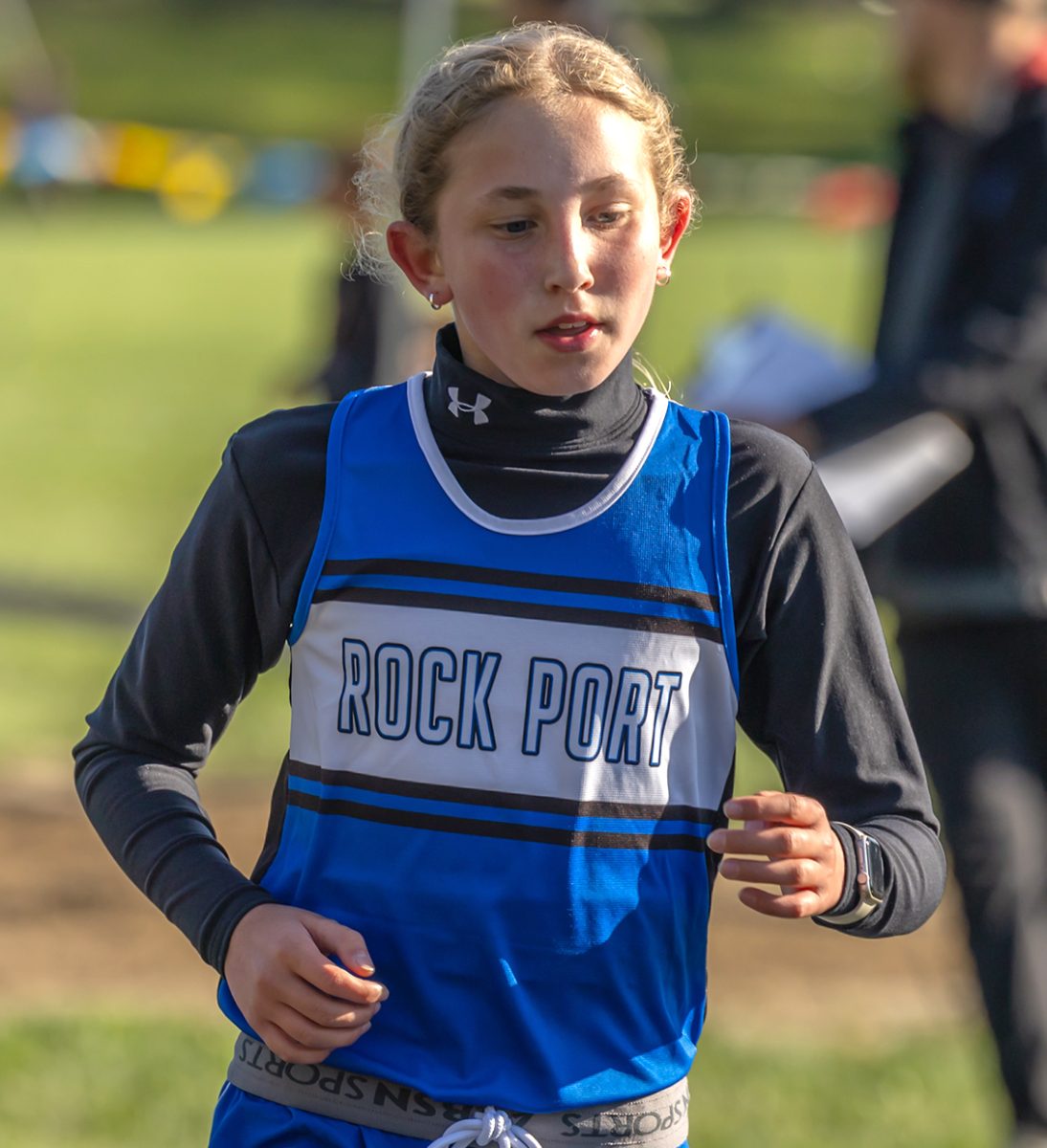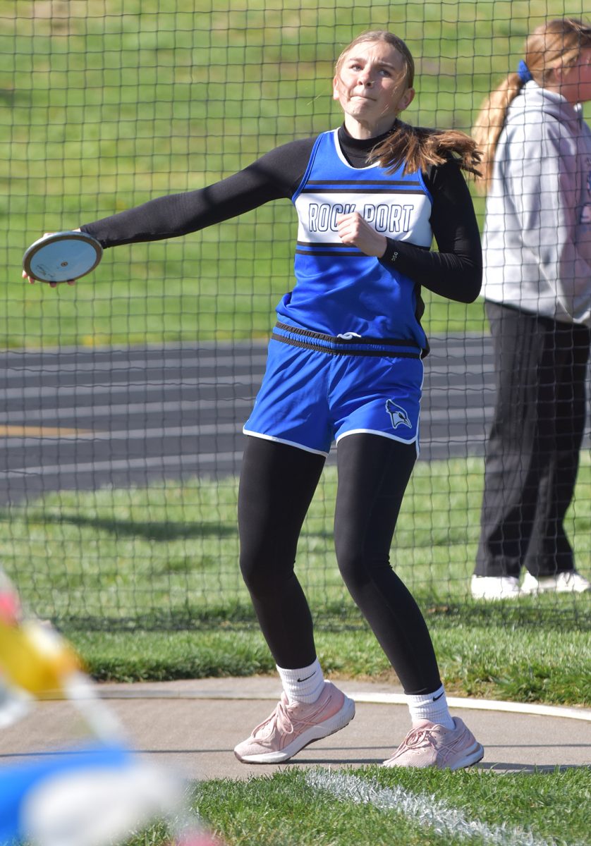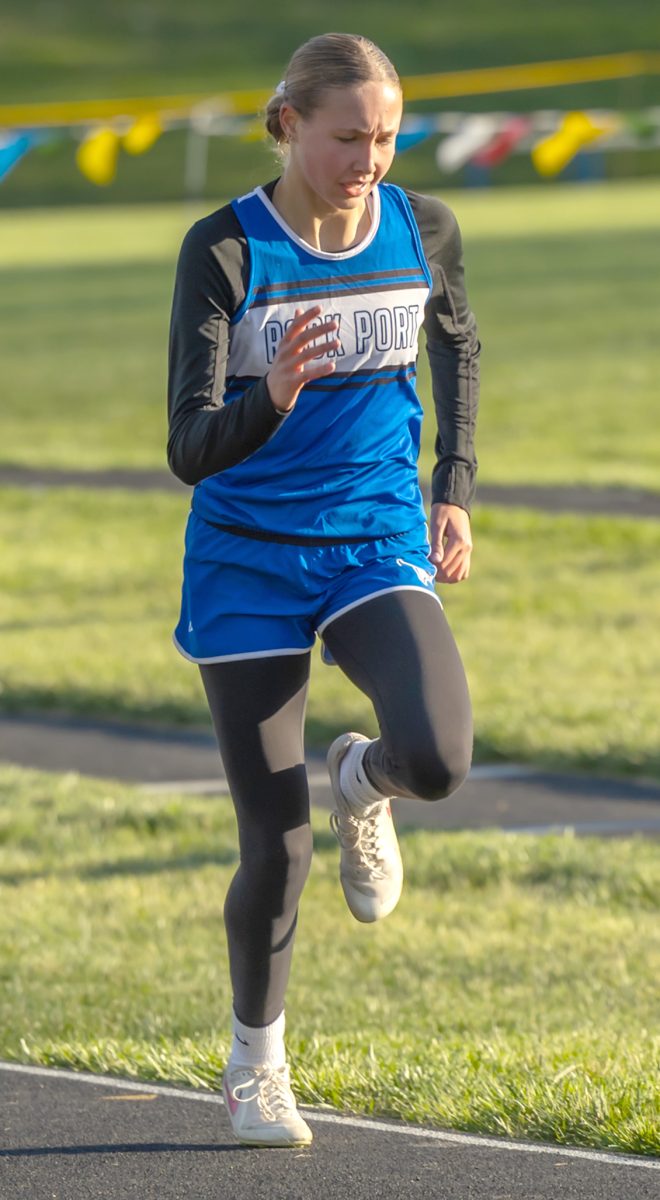 The Rock Port girls’ 4×400 meter relay team (Reese Herron, Talyn Amthor, Braylyn Wood, Audrie Meyerkorth) set a new record in the Junior High Blue Jay Relays with a time of 4:35.28.