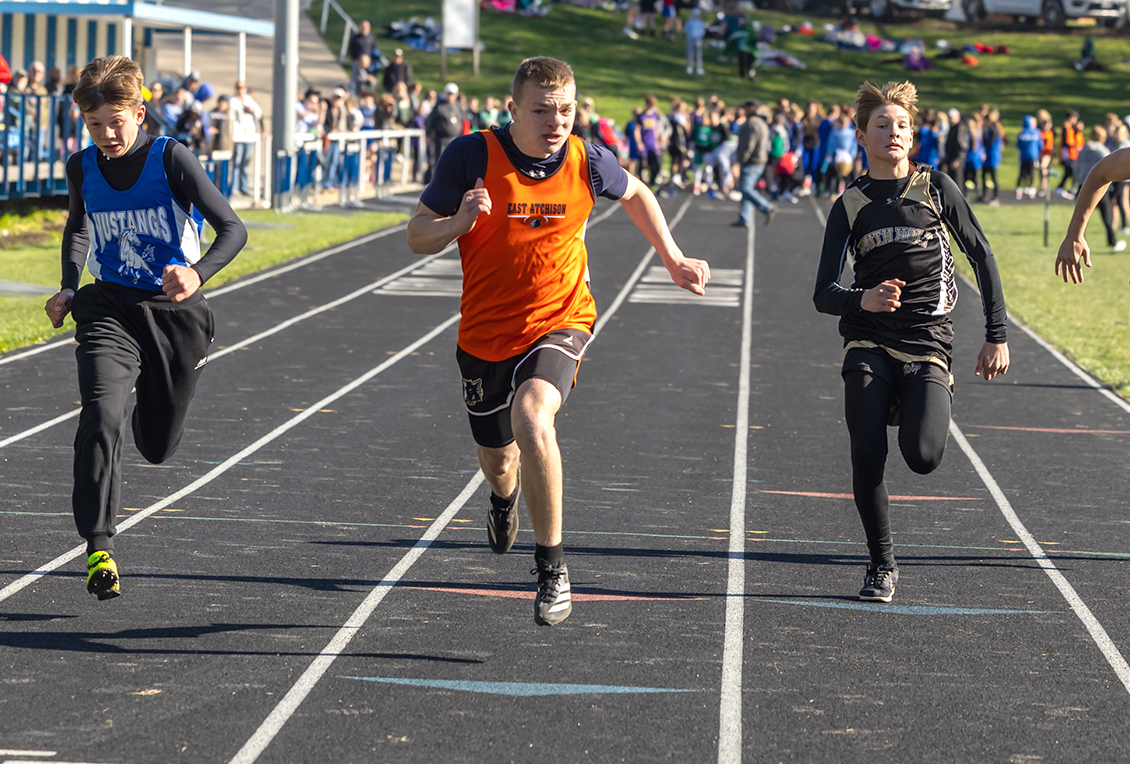 4×100 Meter Relay – 1st, North Andrew ((Jacob Hill, Corben Hurst, Levi McAfee, Adler Miller, Adler), 52.14; 2nd, Mound City (Parker Hale, Brody Voltmer, Zachary Caton, Cole White), 55.36; 3rd, Worth County (Maverick Cox, Jordan Dannar, Mason Hiatt, Bentley Frisch), 56.86; 4th, South Holt (Brody Sage, Hayden Piper, Hale Coleman, Jorden Piper), 57.42; 5th, Rock Port (Rush Lewis, Tennyson Lansdown, Malachi Davis, John Gillem), 59.48; 6th, Nodaway Valley (Will Thompson, Myles Shipley, Brogan O’Conner, Ethan Randall), 59.90; 7th, North Nodaway (Robbie Forney, Reed Martin, Hayden Marriott, Jackson Keho), 1:00.03; 8th, East Atchison (Drew Cowan, Evan Rogers, Riley Koop, Wyatt Landess), 1:00.25; 9th, Union Star (Brock Angus, Kort Burnfin, Brayden Churchill, Colton Thompson), 1:02.13; 10th, Albany (Dylan Anthony, Jayden Rigney, Jaydon Staudenmaier, Caidyn Fish), 1:05.07