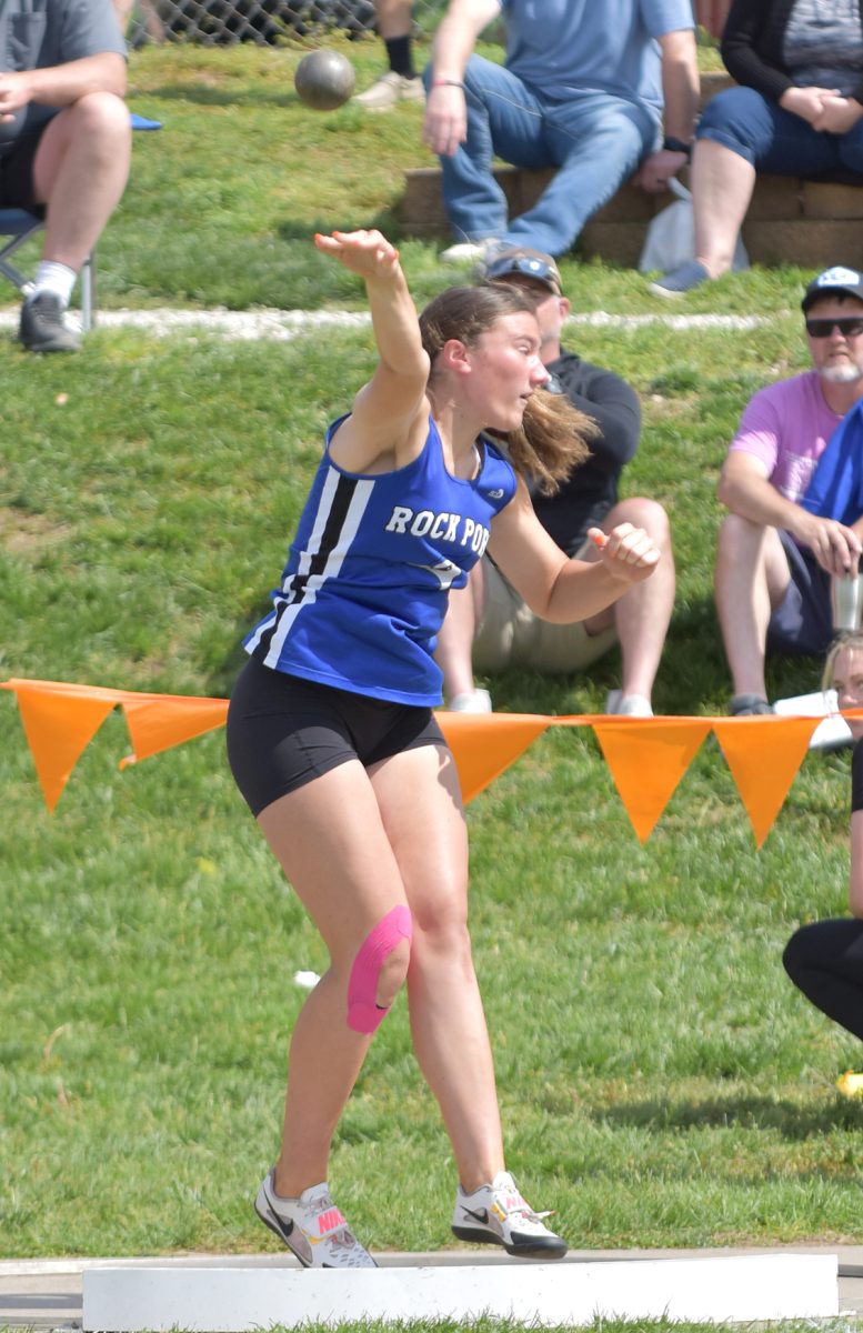 Rock Port’s Rylee Jenkins set two records at this year’s high school meet. Her shot put distance of 12.26 meters beat the record of 12.12 meters set by Alivia Baucom of Rock Port in 2021. Rylee beat her own record of 39.33 meters from last year in discus with a throw of 44.59 meters.