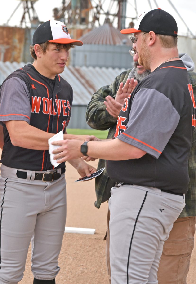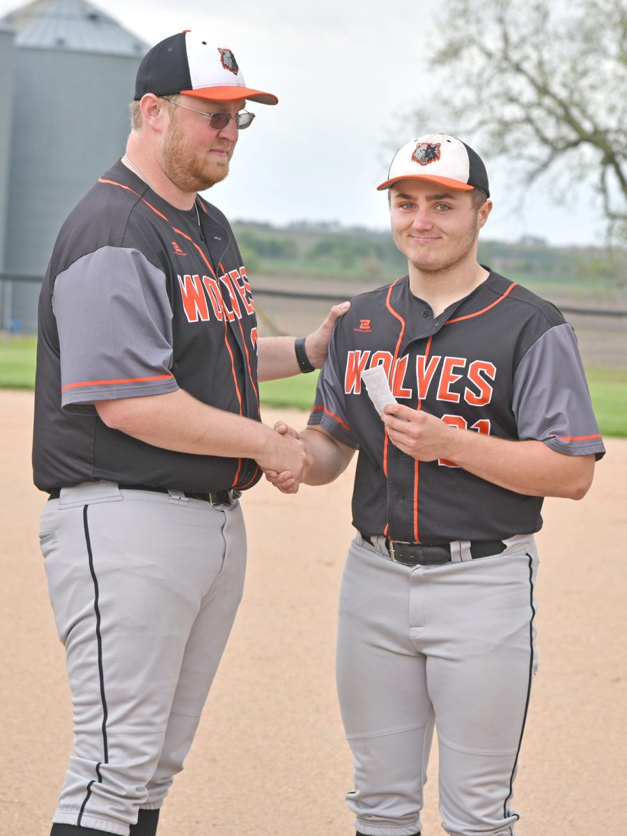 Coach Albertson presented the All-State media patches to EA football honorees before the baseball game Monday, May 6, 2024. Tate Johnson (above) and Collin Hedlund (below) were the two recipients.