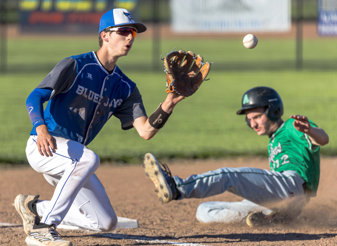 Third baseman Case Millsap is in position, but the throw wasn’t in time.