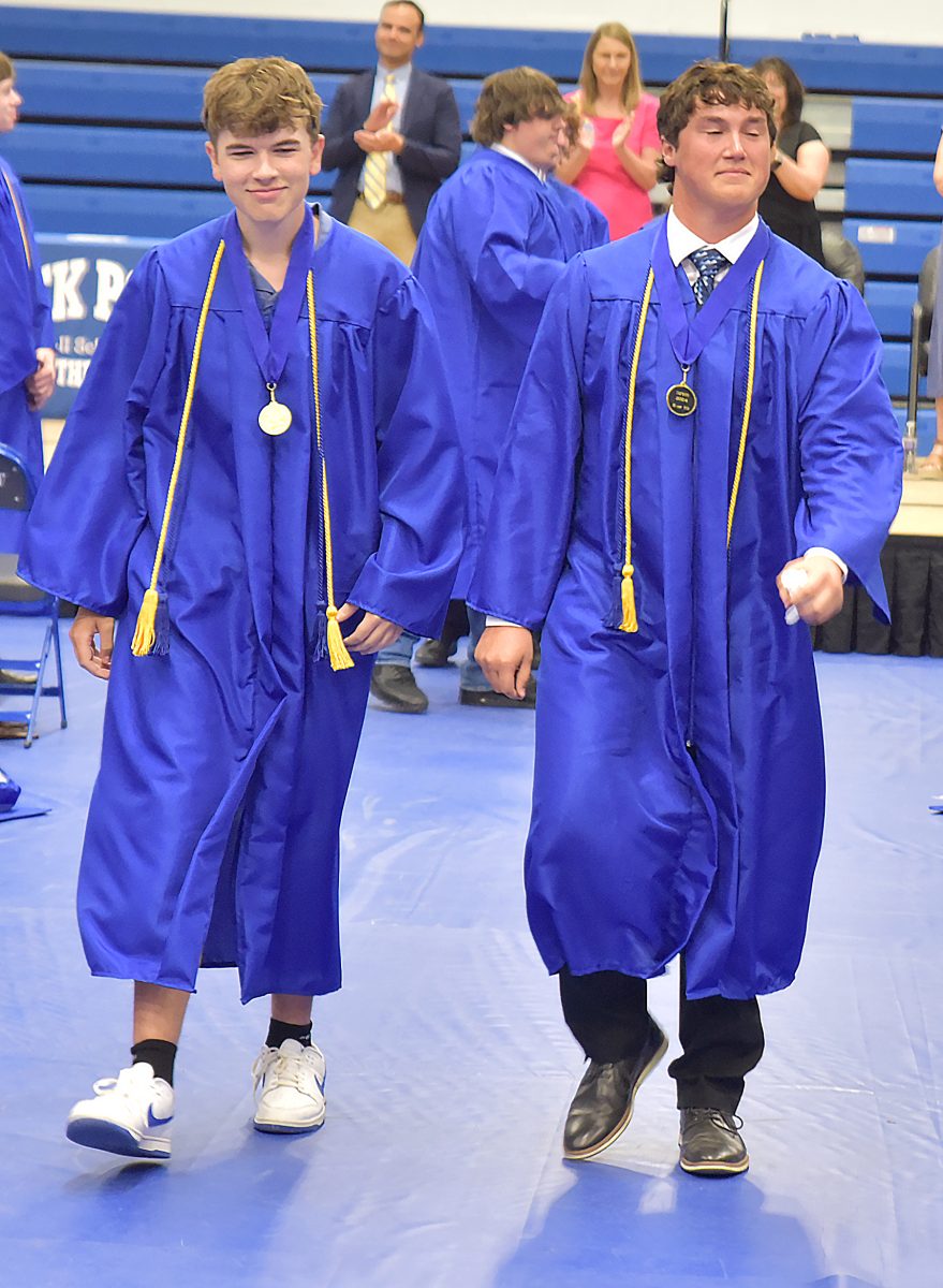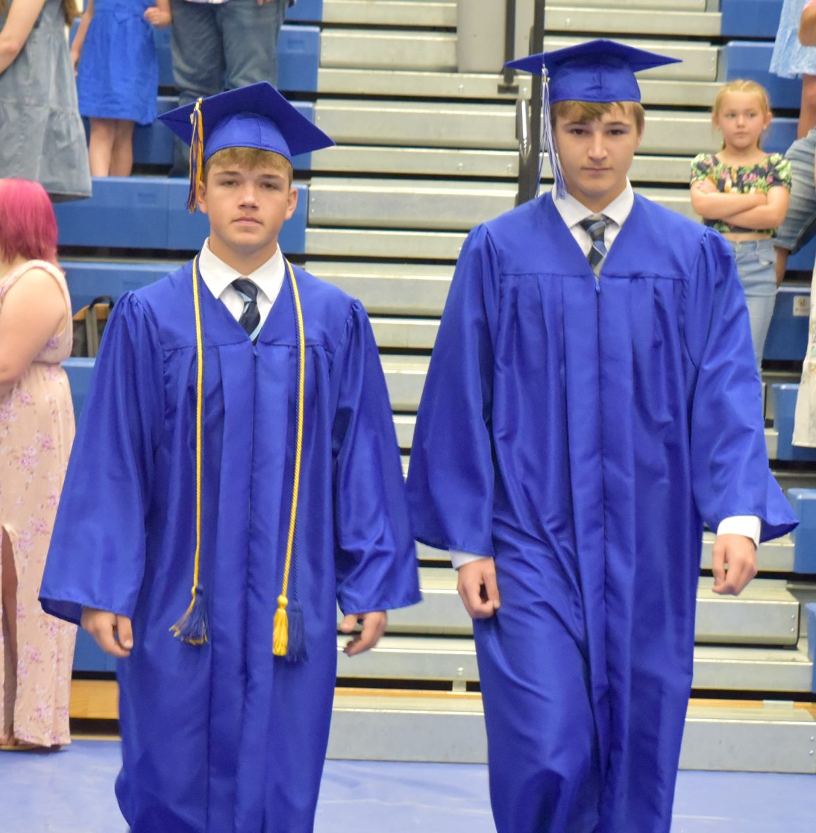 Carter Gebhards and Tarver Muntz walk out as new alumni of Rock Port R-II.