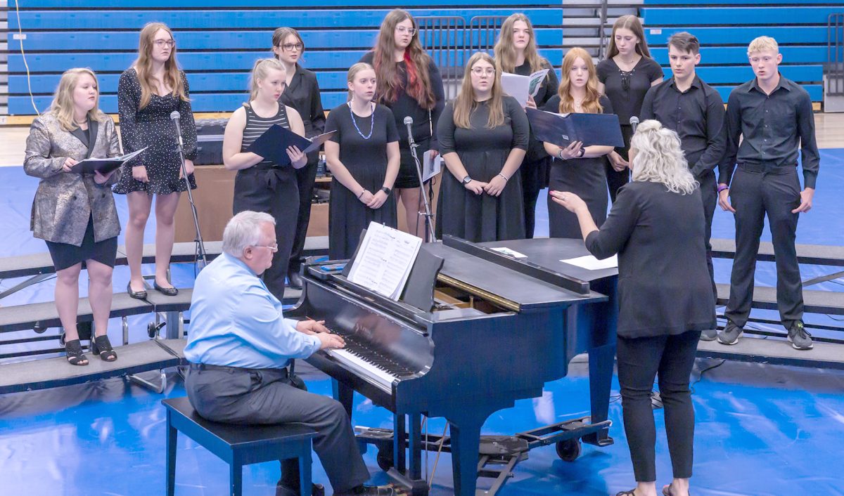 The high school chorus sang “Hallelujah,” “Just Believe,” and “Pompeii.” The vocalists were directed by Abby Palmer and Richard Boettner was the accompanist.