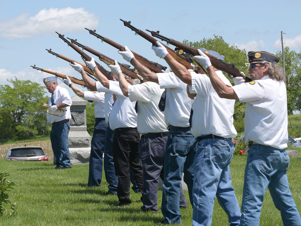 The Atchison and Holt County American Legions came together once again to honor the fallen veterans on Memorial Day. Starting at Mound City, they travelled to Craig before coming to the Fairfax City Park where there were several people gathered. There were five stops in Atchison County: Fairfax City Park, Atchison County Memorial Building in Rock Port, St. John’s Cemetery and Center Grove Cemetery, Westboro, and Home Cemetery, Tarkio. At each location the Legion performed a full service and Crystal Woodring sang the national anthem while the flag was lowered to half staff. Tarkio Legion Commander Tim Morehouse welcomed everyone to the ceremony and introduced the guest speaker, Shawn Harper, who brought out the patriotic side of all in attendance. Legion members laid a wreath at the tomb of the unknown soldier followed by three volleys and the playing of “Taps” by Roger Pennel.