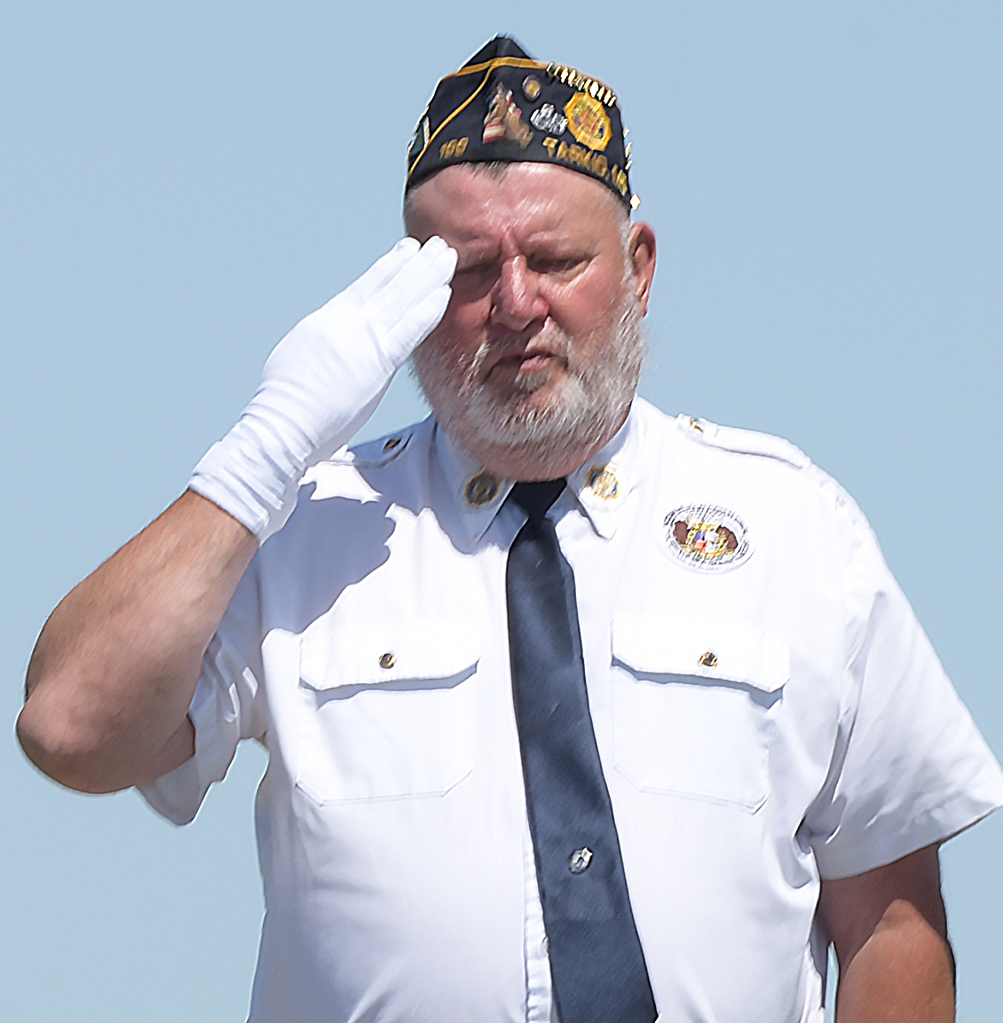 Allen-Schiffern American Legion Commander Tim Morehouse salutes the grave of the unknown soldier at Center Grove Cemetery.