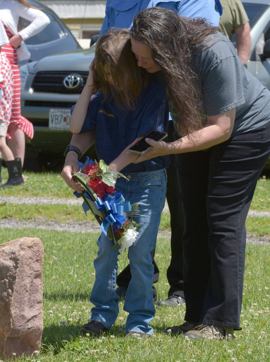 Scout Marvel Lester places the wreath for the unknown soldier at Home Cemetery.