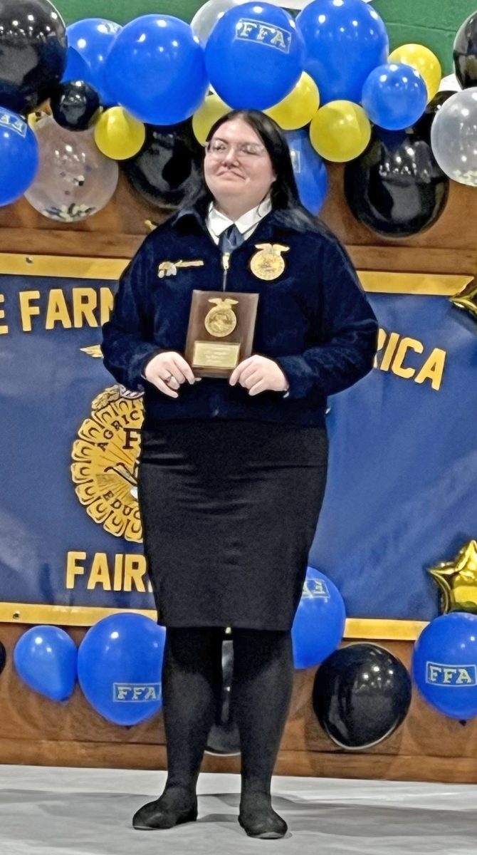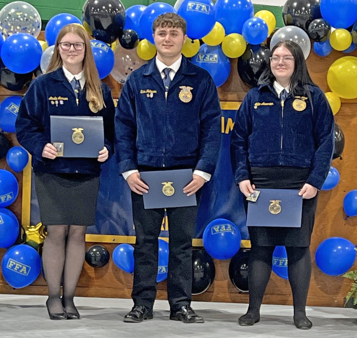 Fairfax FFA members earning the Chapter Degrees included Amelia Larson, Tatem Johnson, and Lillie Auwarter. Also earning Chapter Degrees, but not in attendance, were Austin Helfers and Joaquin Hill. Charlie Smith, not in attendance, was presented the Chapter Star Farmer.