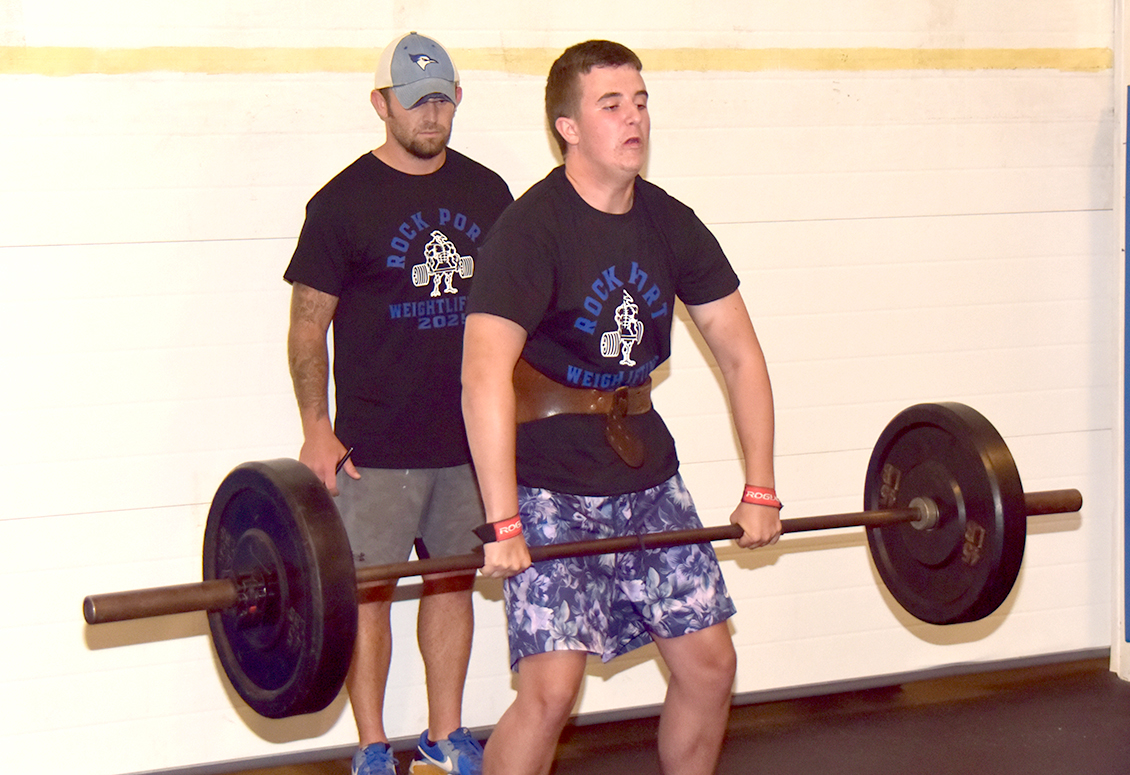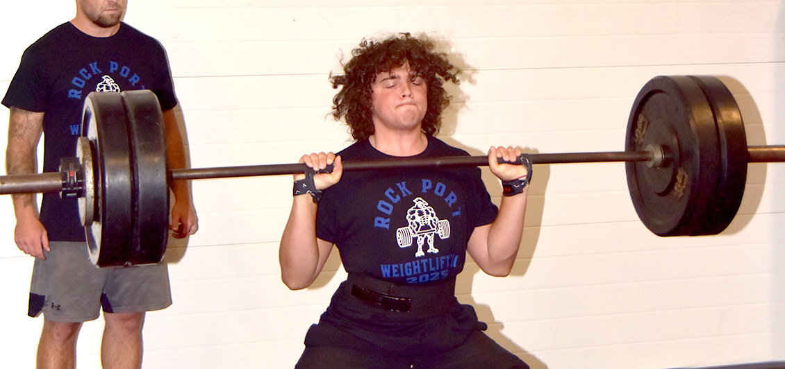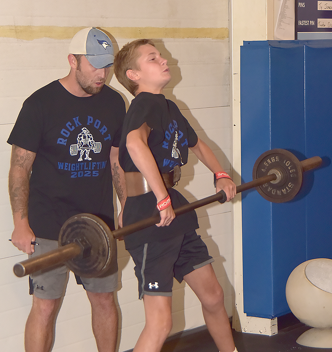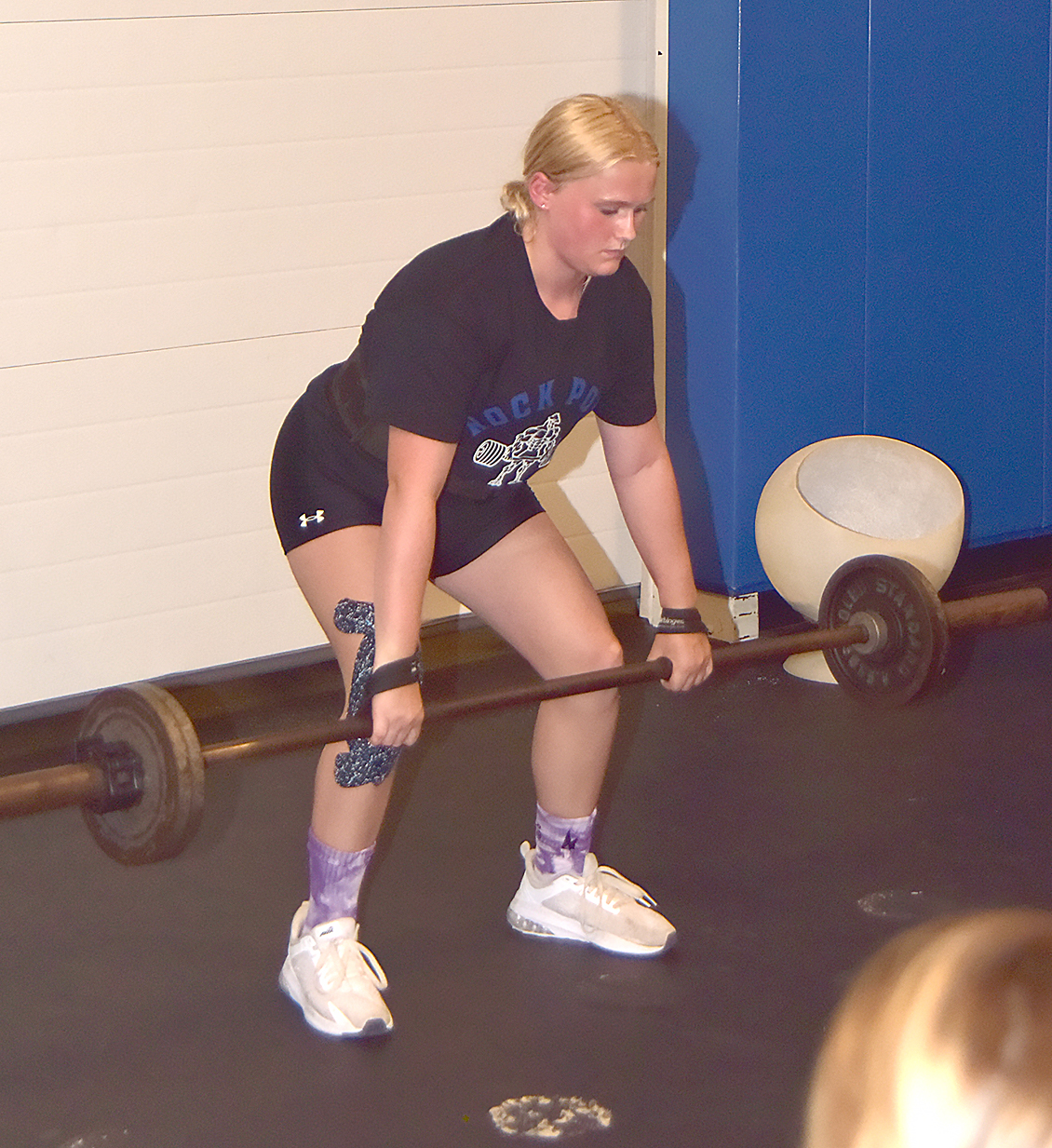 Rock Port’s summer weight lifting program wrapped up on Wednesday, July 30, 2025, with a lift-off of the hang clean. Pictured, from left to right, are: front row – Adrianna Wallace, Rush Lewis, Colt Seiter, Tennyson Lansdown, Grady Cook, Grant Spiegel, Blaise Krogen, Landon Melton-Burrel, and Coach Stephanie Parsons; middle row – Coach Dalton Jones, Ryzer Hale, Brock Holmes, Logan Ellis, Westyn Amthor, Tayden Cook, Isaac Shimmel, Jaxson Smith, and Wyatt Huntley; and back row – Quentin Jackson, Rylan Hunter, Desmond Chaney, Dayton Hayes, Reid Ellis, and Henley Mace. (See this week’s edition for more individual results.)