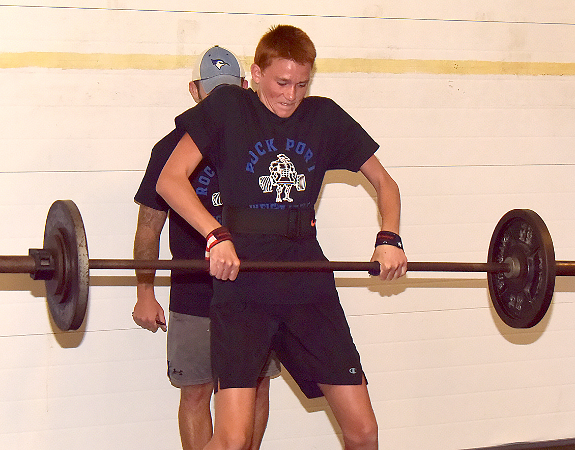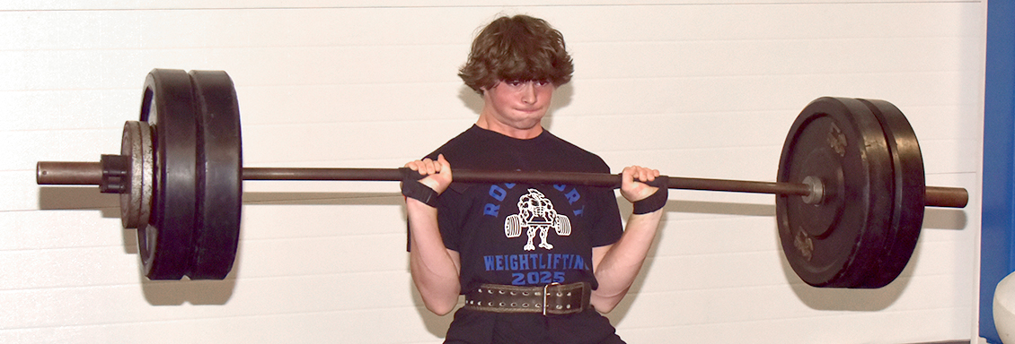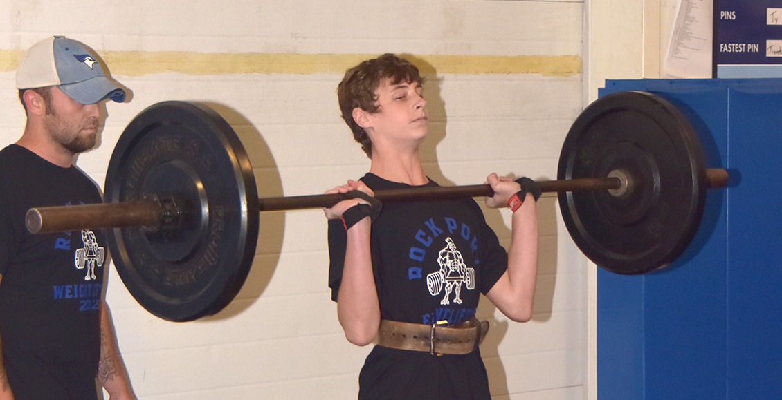 Rylan Hunter, a sophomore, gets a good pull to max out at 145 lbs.