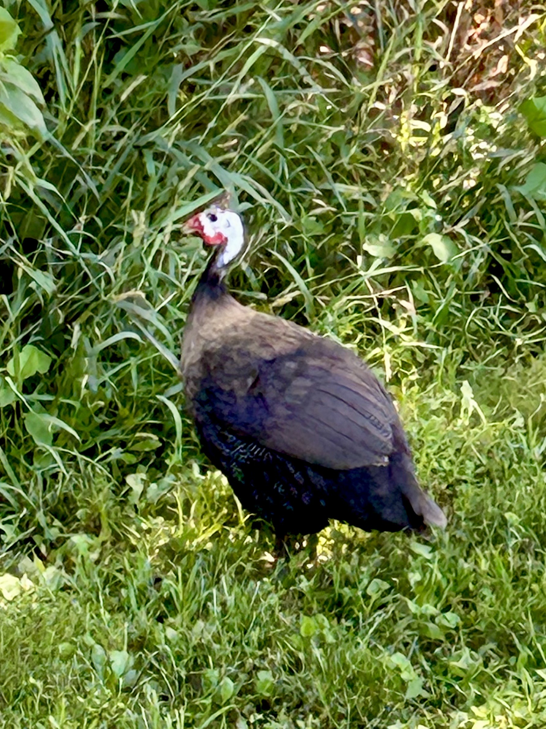 Cindy Walker Burton spotted this guinea fowl foraging at the edge of the woods. He was keenly aware of her presence.