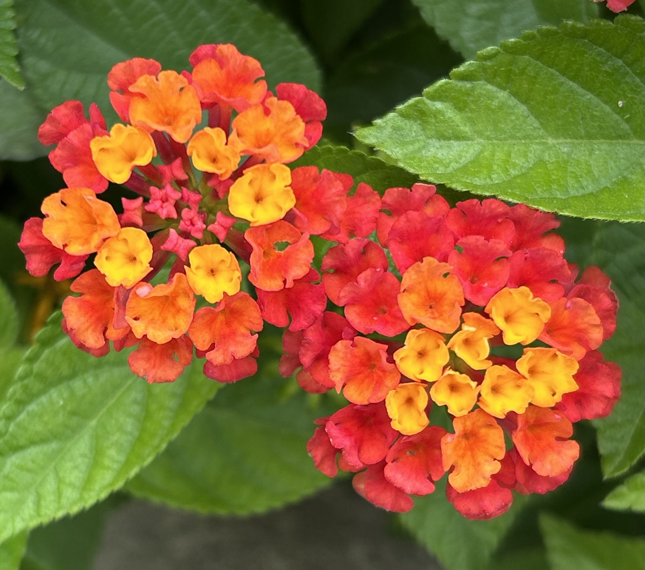 The Lucky Red species of lantana showcases fiery autumn colors.