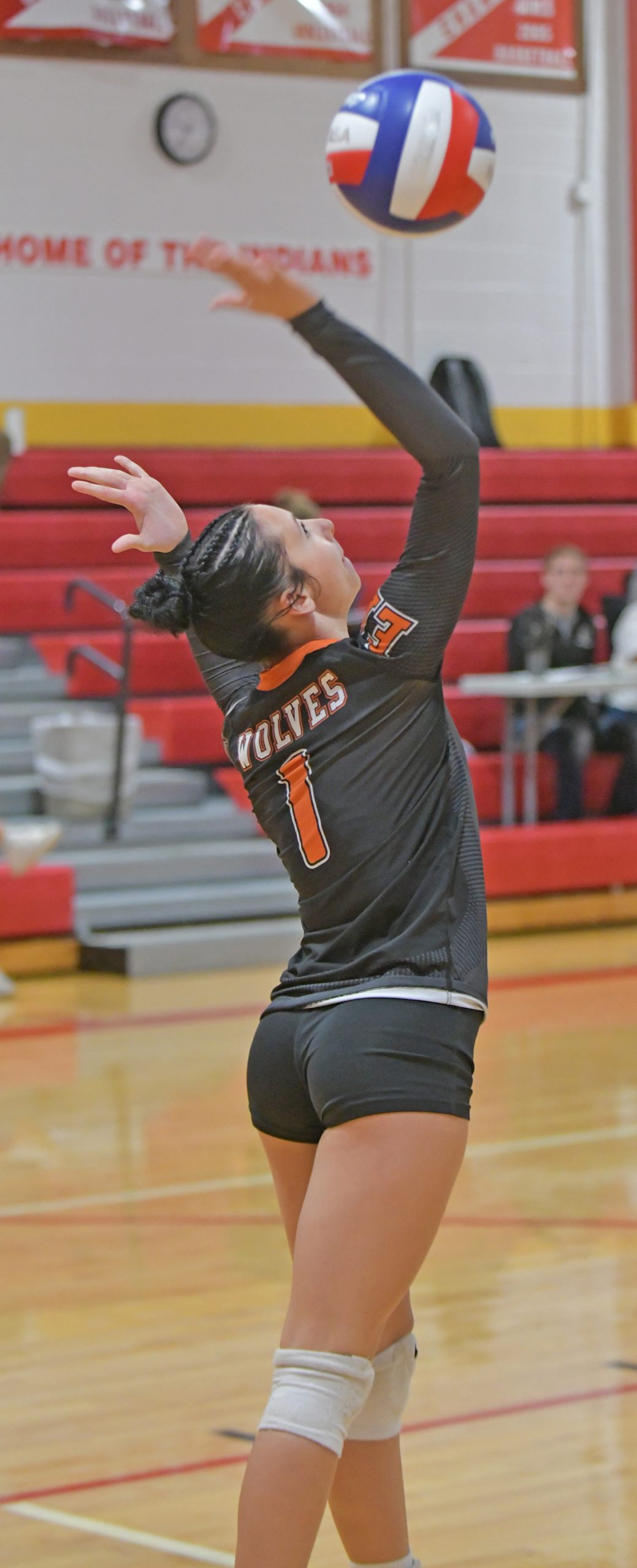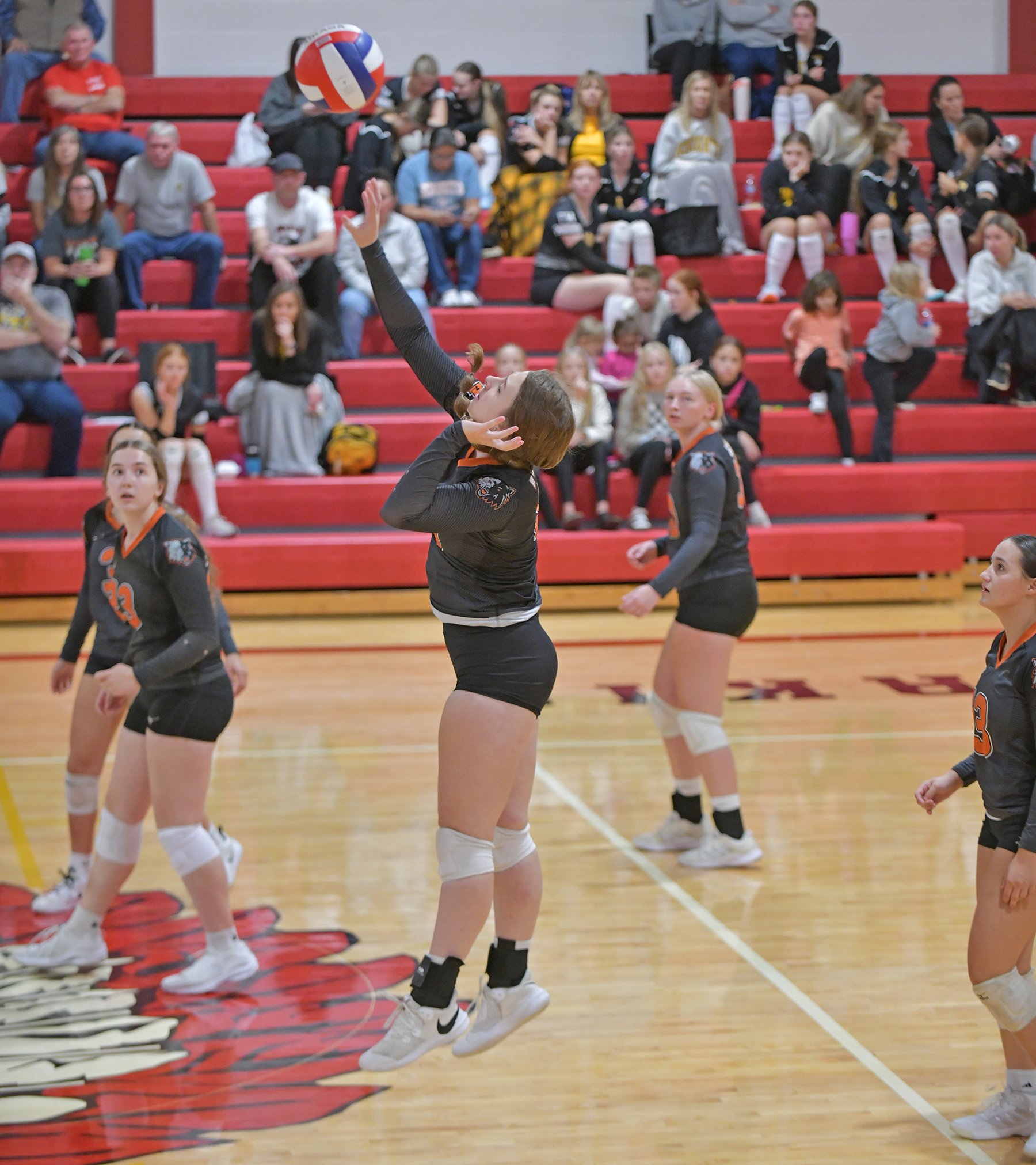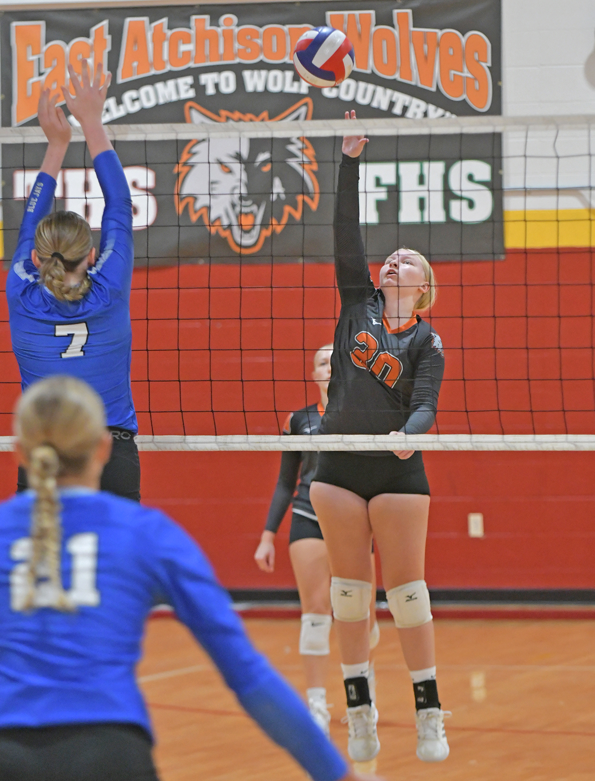 East Atchison’s Rainy Nordhausen hits one over. The Lady Wolves hosted a volleyball tournament September 6. Stats will be published in next week’s paper.