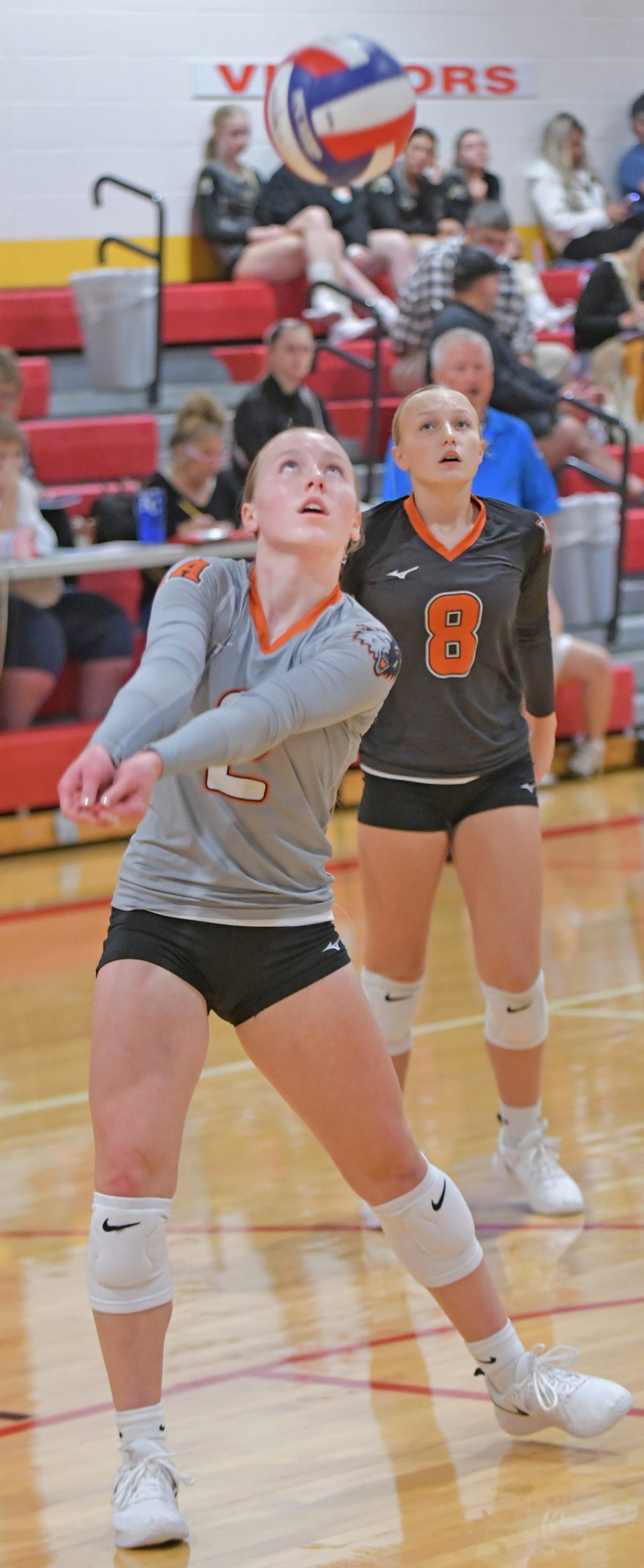 Grace Caudill keeps the ball in motion for the Lady Wolves as her sister, Makenna Caudill, follows the action.