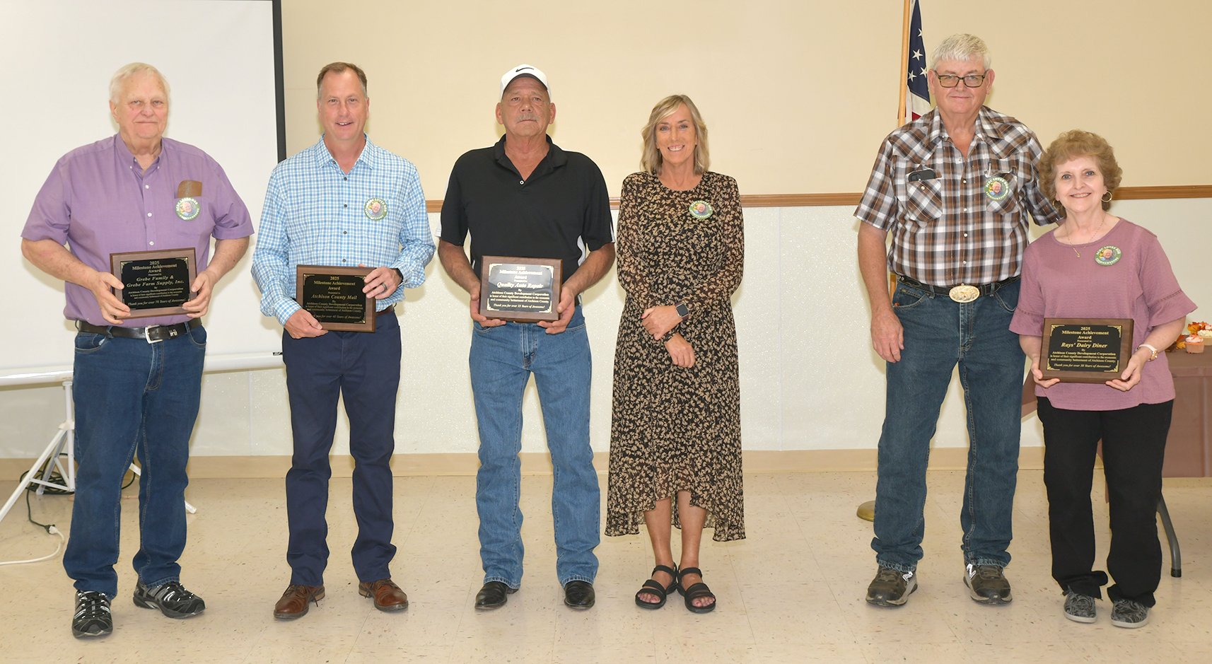 Milestone Achievement Awards were presented to Dick Grebe (Grebe Family and Grebe Farm Supply, Inc.), W.C. Farmer (Atchison County Mail), Bill and Mary Ann Hull (Quality Auto Repair), and Kent and Janice Ray (Rays’ Dairy Diner).
