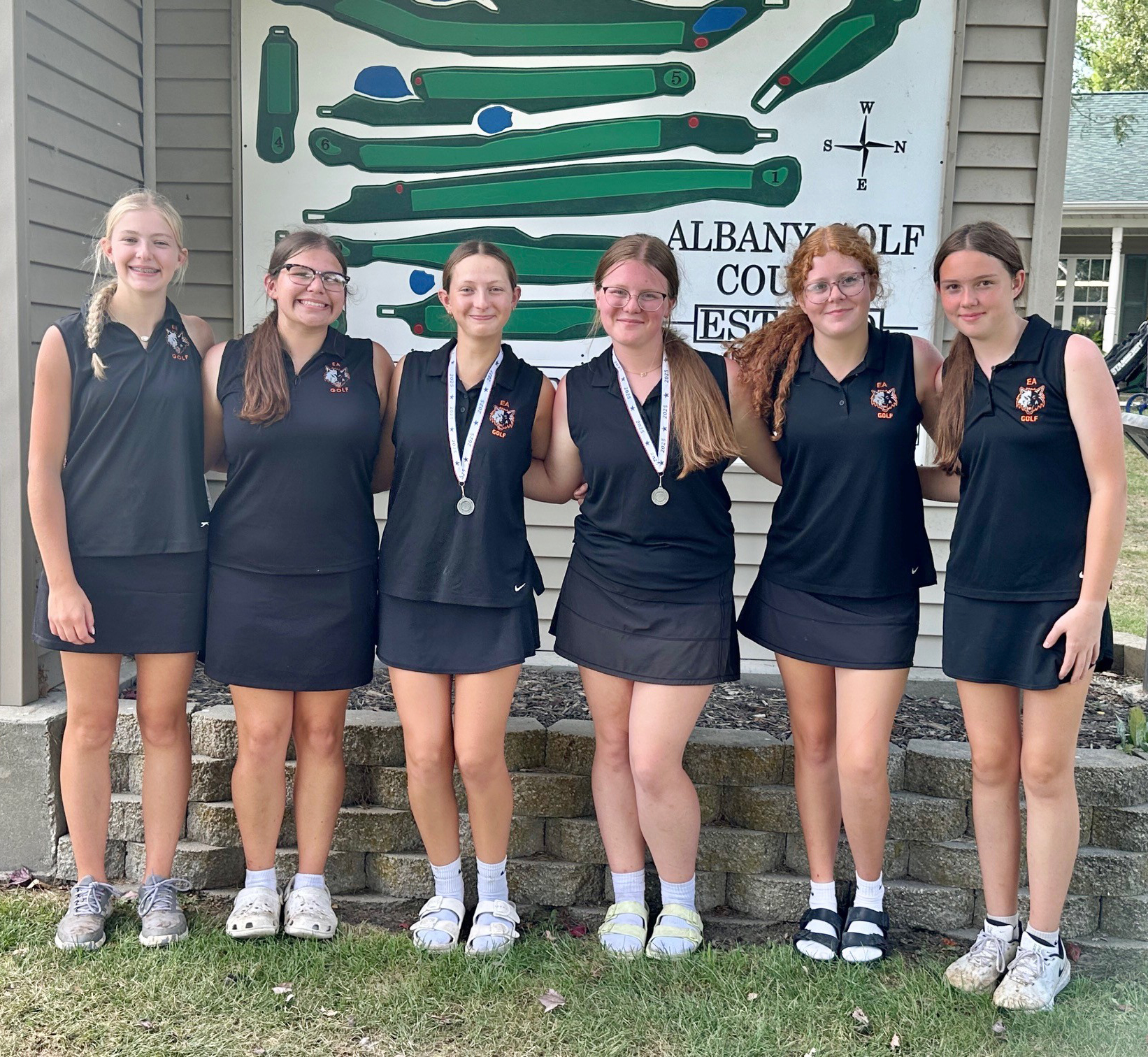 East Atchison and Rock Port golfers traveled to Albany, Missouri, Monday, September 22, 2025, to compete in a best shot tournament. Rock Port’s Karlie Gebhards and Emma Teten earned medals for their first place finish with a score of 80. East Atchison’s Amelia Larson and Danika Agnew received medals for their second place finish with a score of 82.