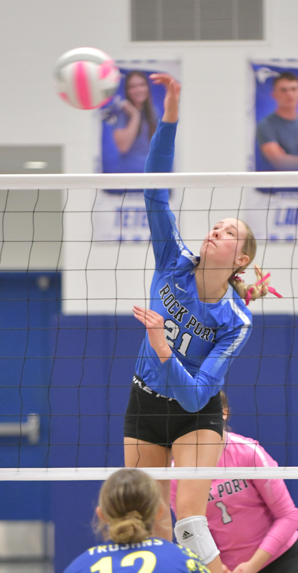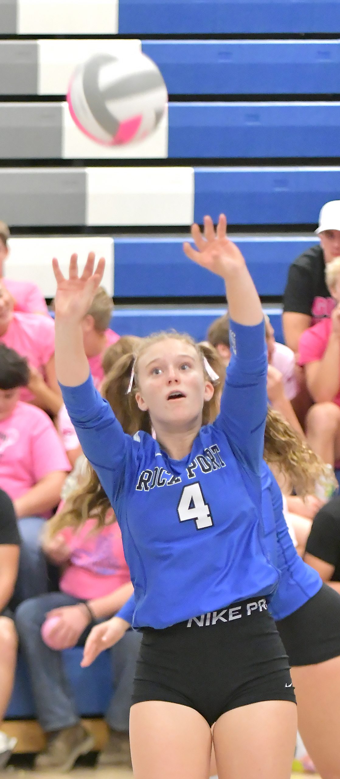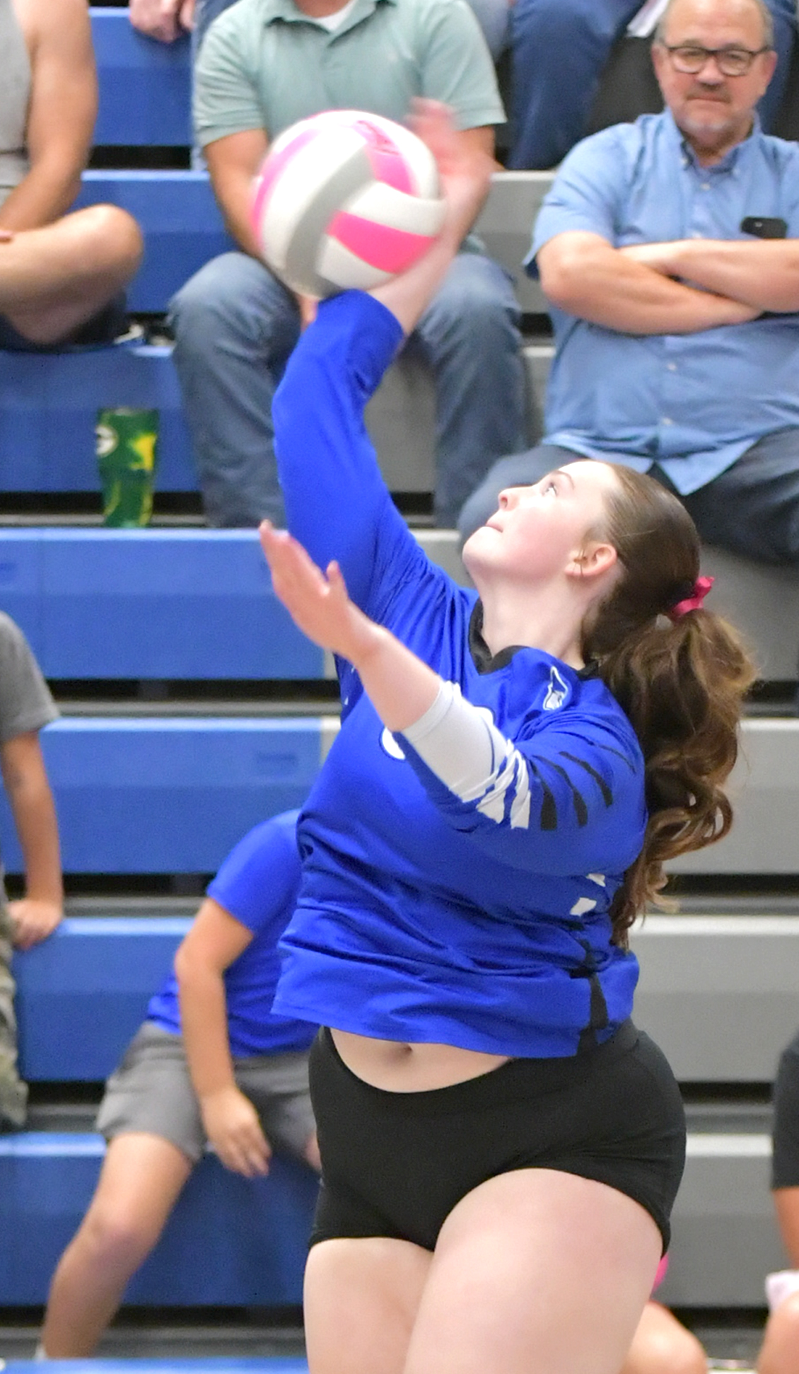 Raylynn Jenkins sets the net in the Pink Out game against Union Star.