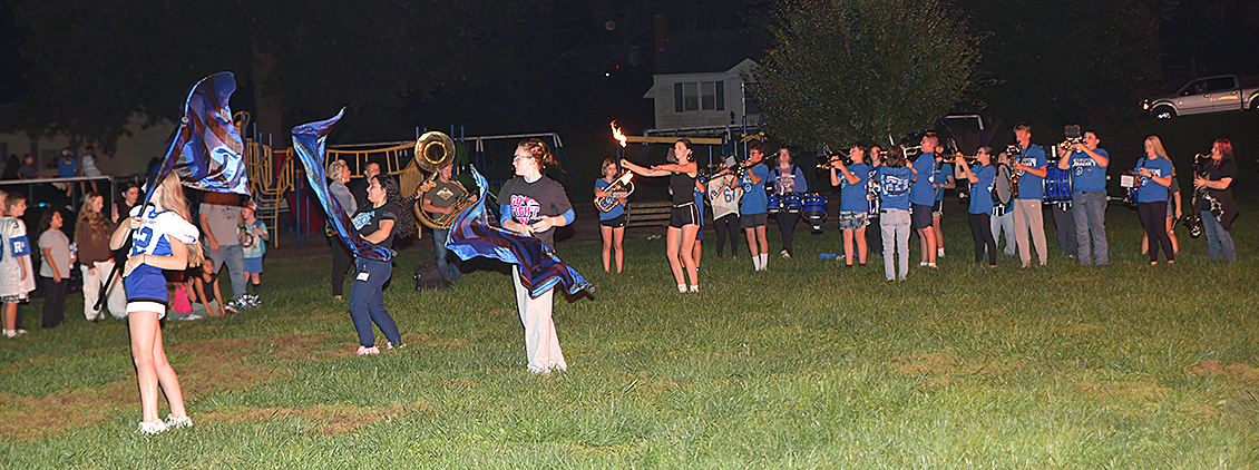 The Rock Port Marching Blue Jays added to the spirit of the bonfire on Thursday night.