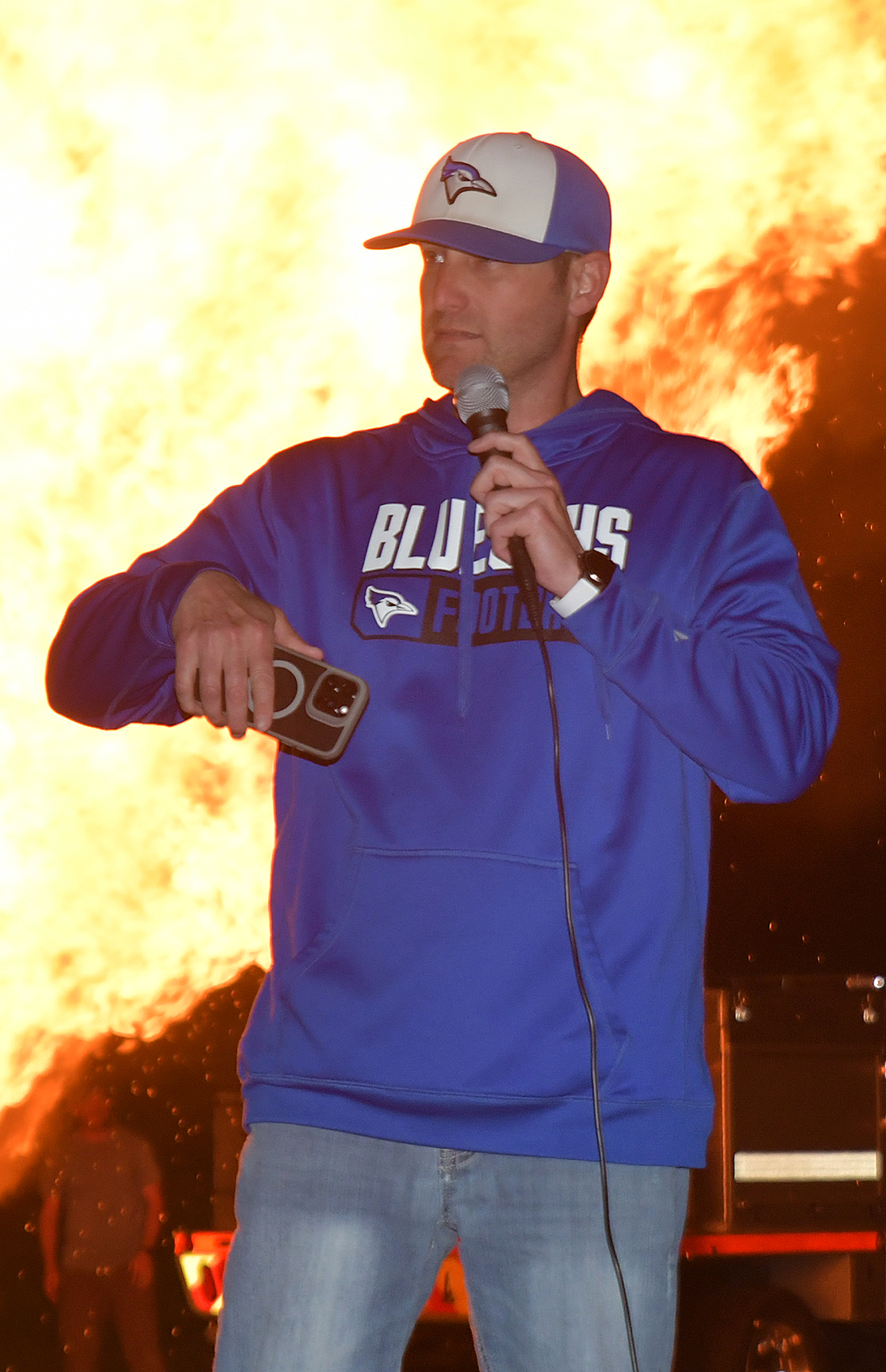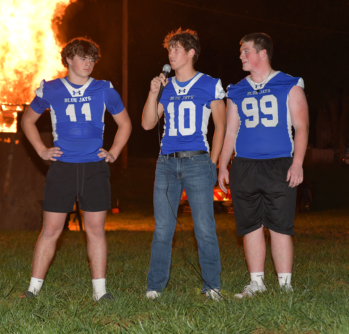 Wyatt Amthor, the voice of the Blue Jays, gave a great pep talk at the bonfire.