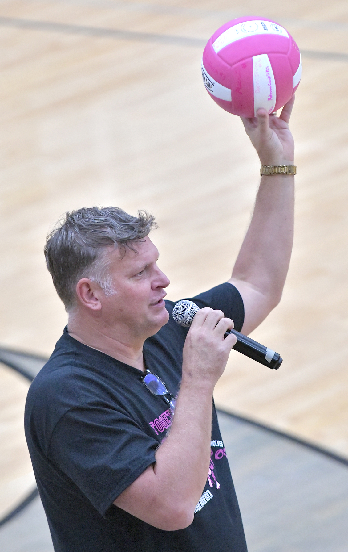 Casey Martin auctioned off a signed Pink Out volleyball to raise money for Schoolhouse Rock. Billy and Kelly Morris were the proud winners, donating $1,000 to help individuals with cancer in Atchison County.
