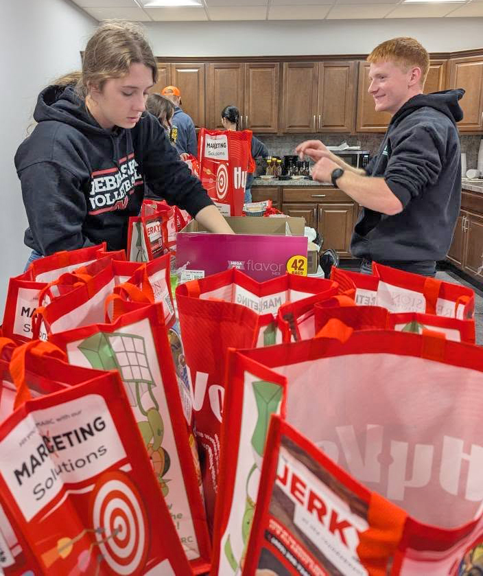Tarkio FFA Chapter members participated in a Feed the Farmers lunch at Ag Partners in Tarkio, Missouri, Tuesday, October 21, 2025. Preparing the sack lunches are Jaeka Wiley and Quin Staten. Supporting companies included Arbor Bank, Hy-Vee, AKRS Equipment, Schaardt Auction Service, Woodhouse Ford, and B&C Truck and Tire Repair. (Submitted photo)