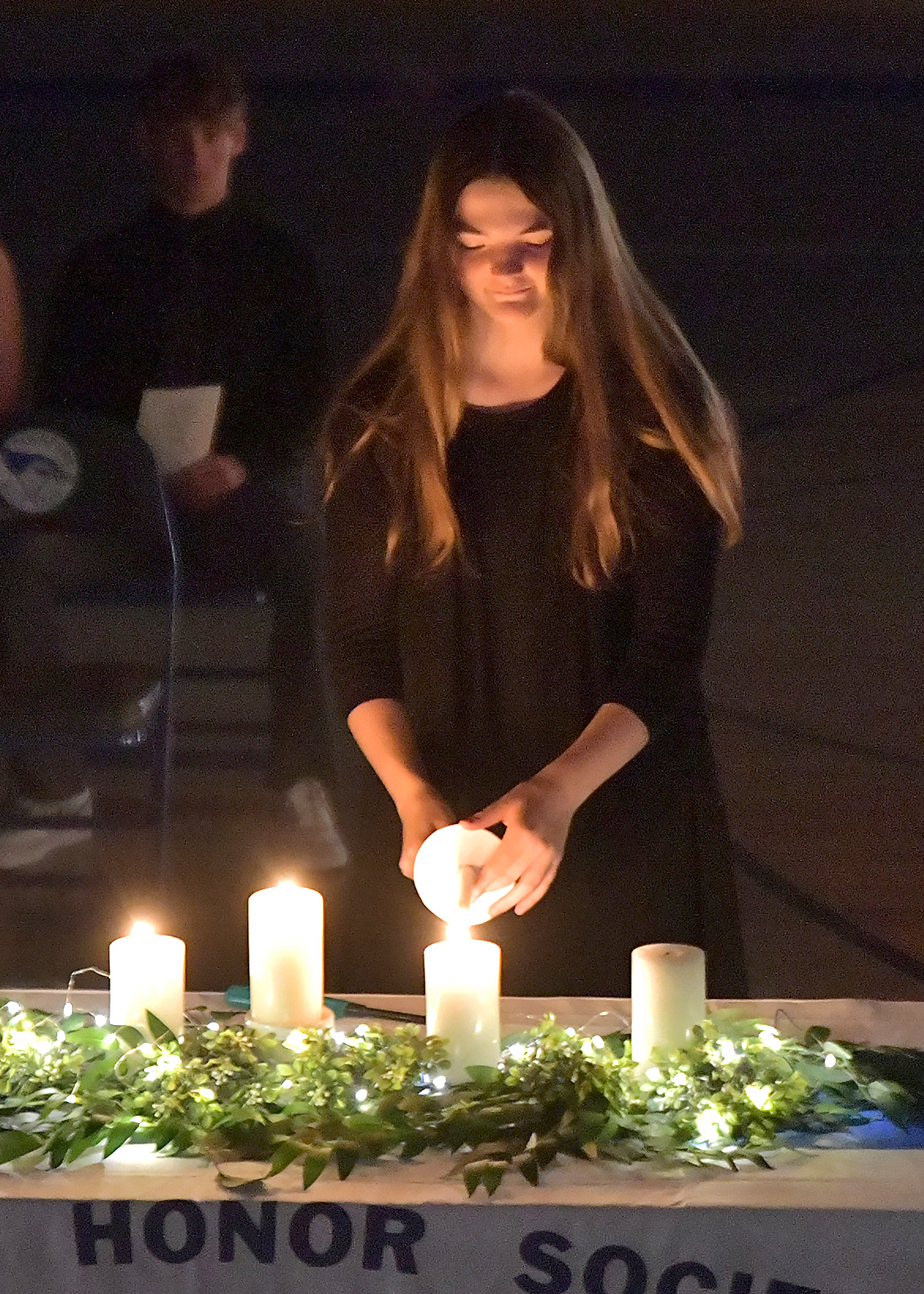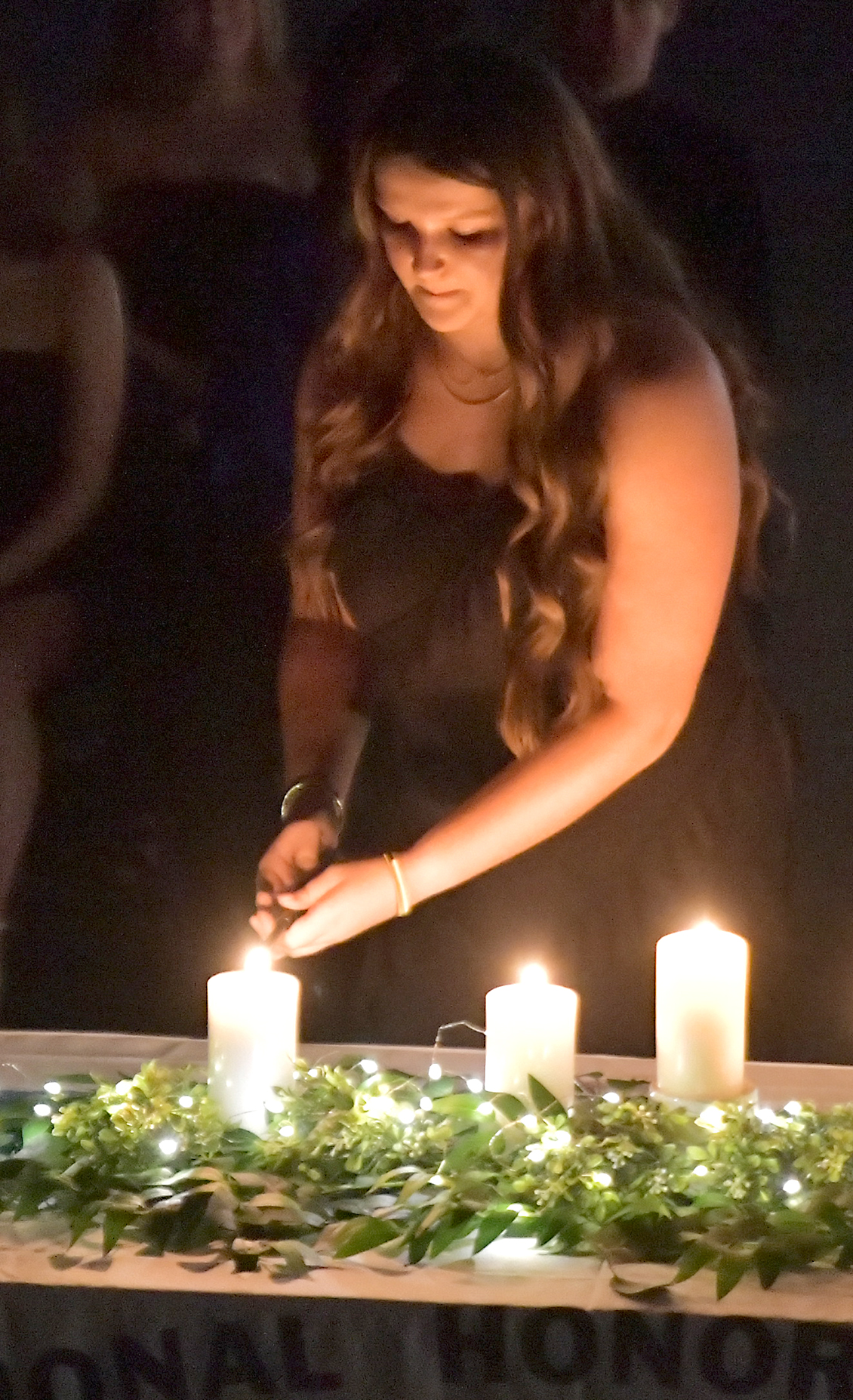 New member Mya Welch touches the flame of the pillars of the National Honor Society.