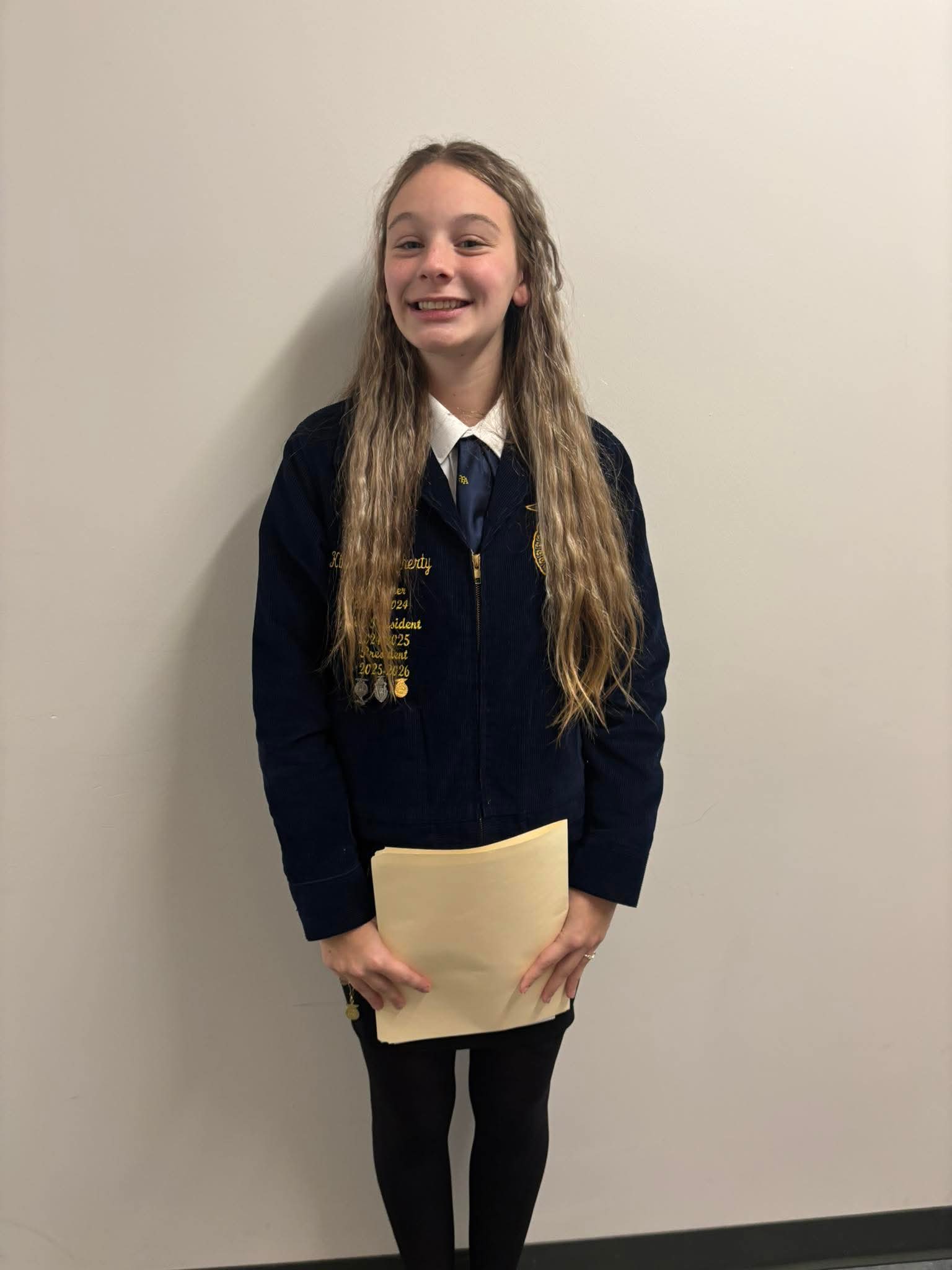 Kinleigh Daugherty placed fourth at the District Fall Speaking Contest November 19 in Cameron, Missouri. Kinleigh, a member of the Rock Port FFA Chapter, qualified for the competition after placing second at the Area 1 Fall Speaking Contest. (Submitted photo)