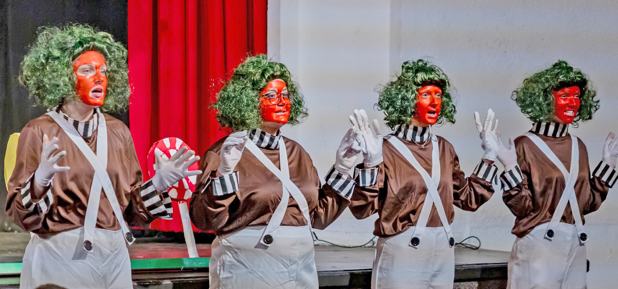 Oompa Loompas Zoe Madron, Raelee Russell, Danika Agnew, and Delainee White kept the crowd entertained with their singing and dancing.