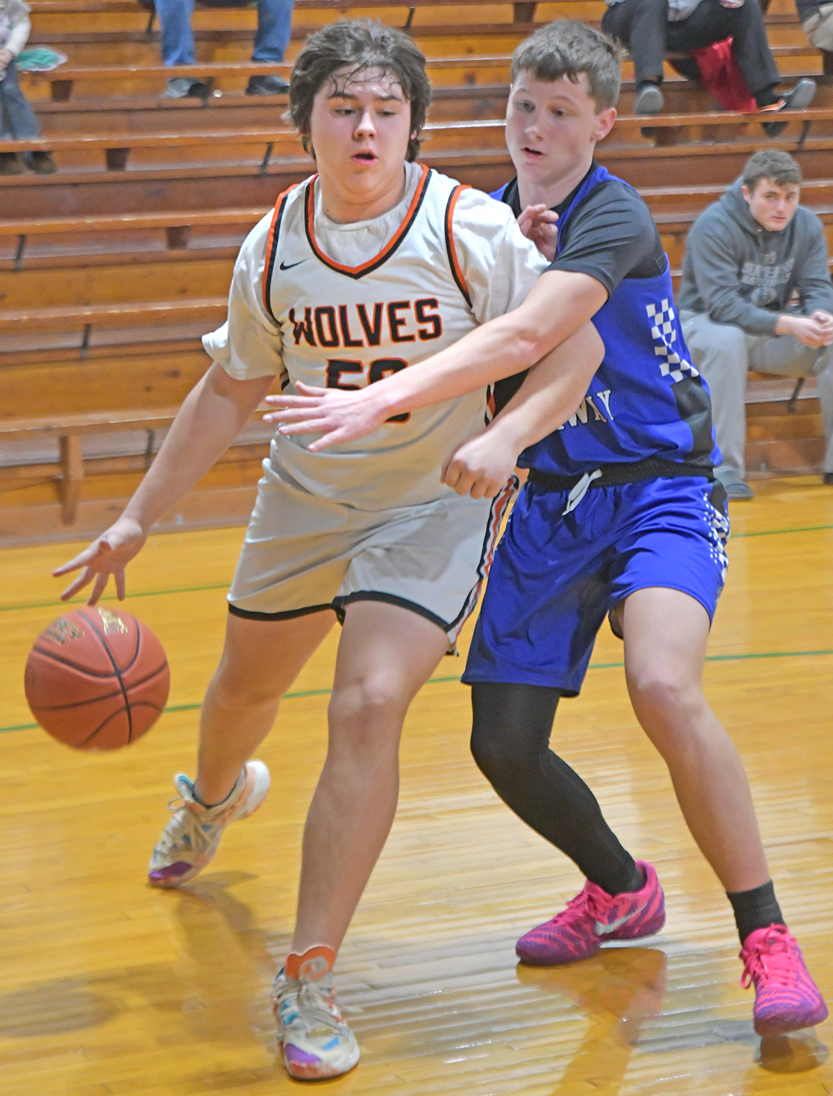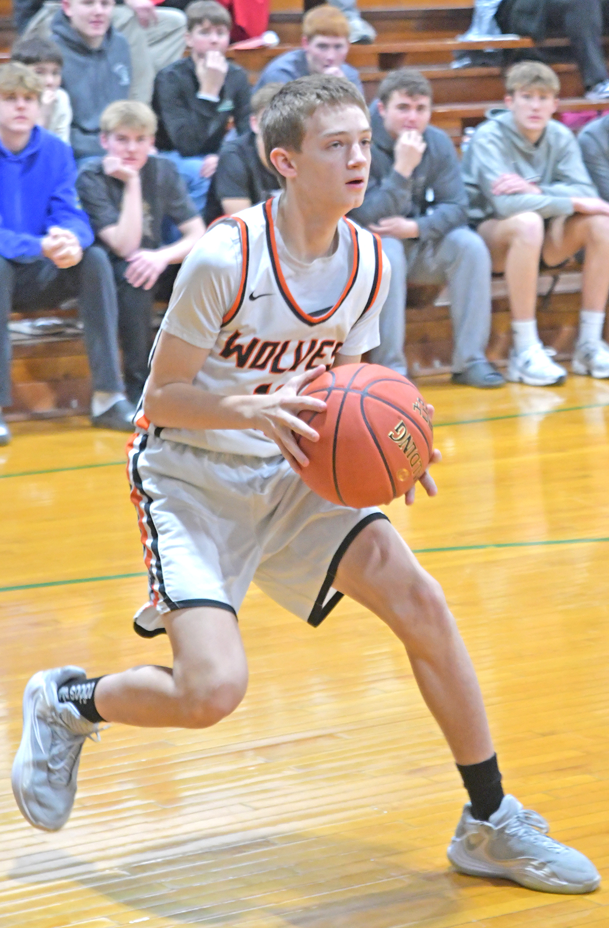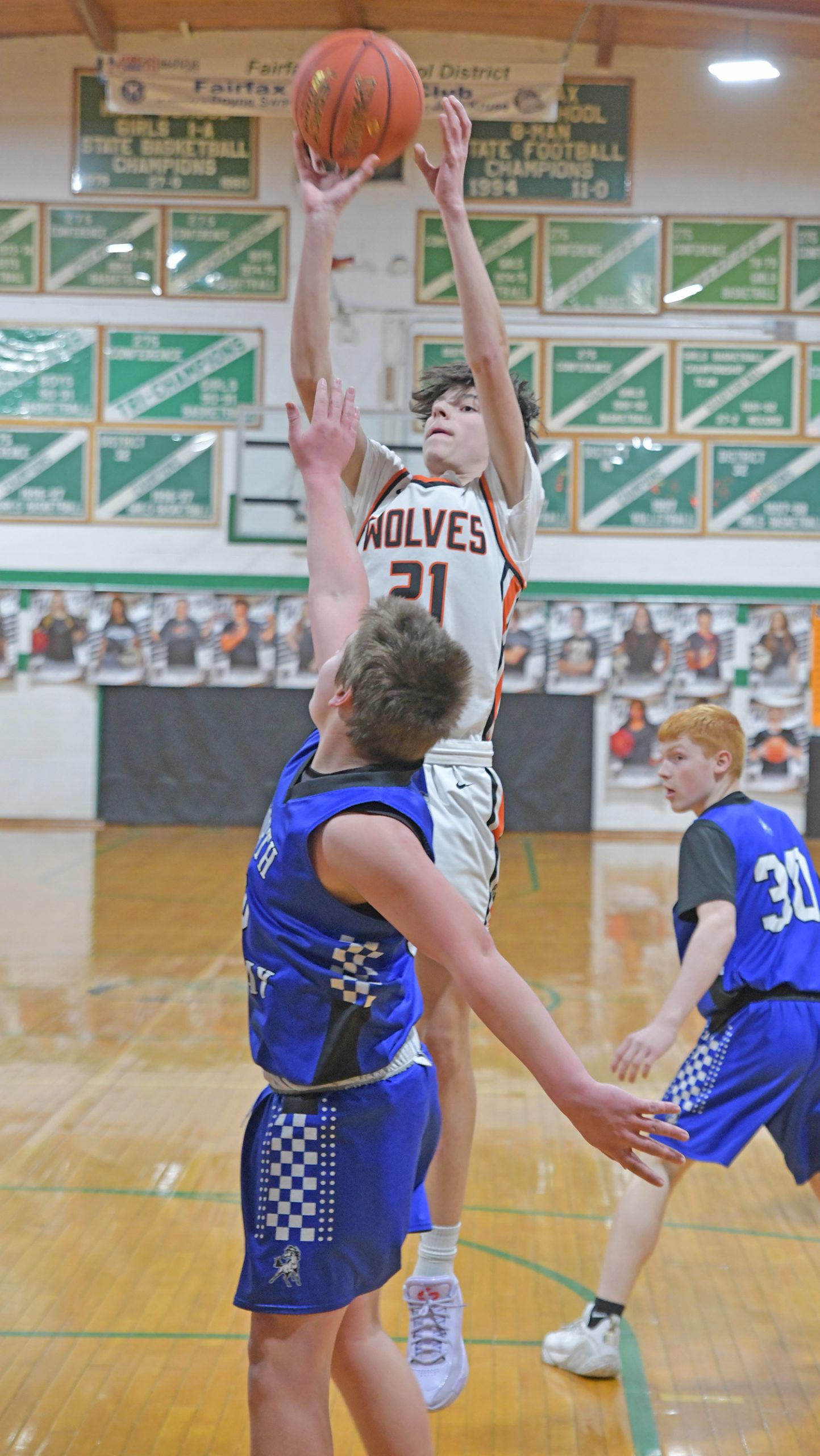 Evan Rogers shoots for two in the JV Wolves’ game.