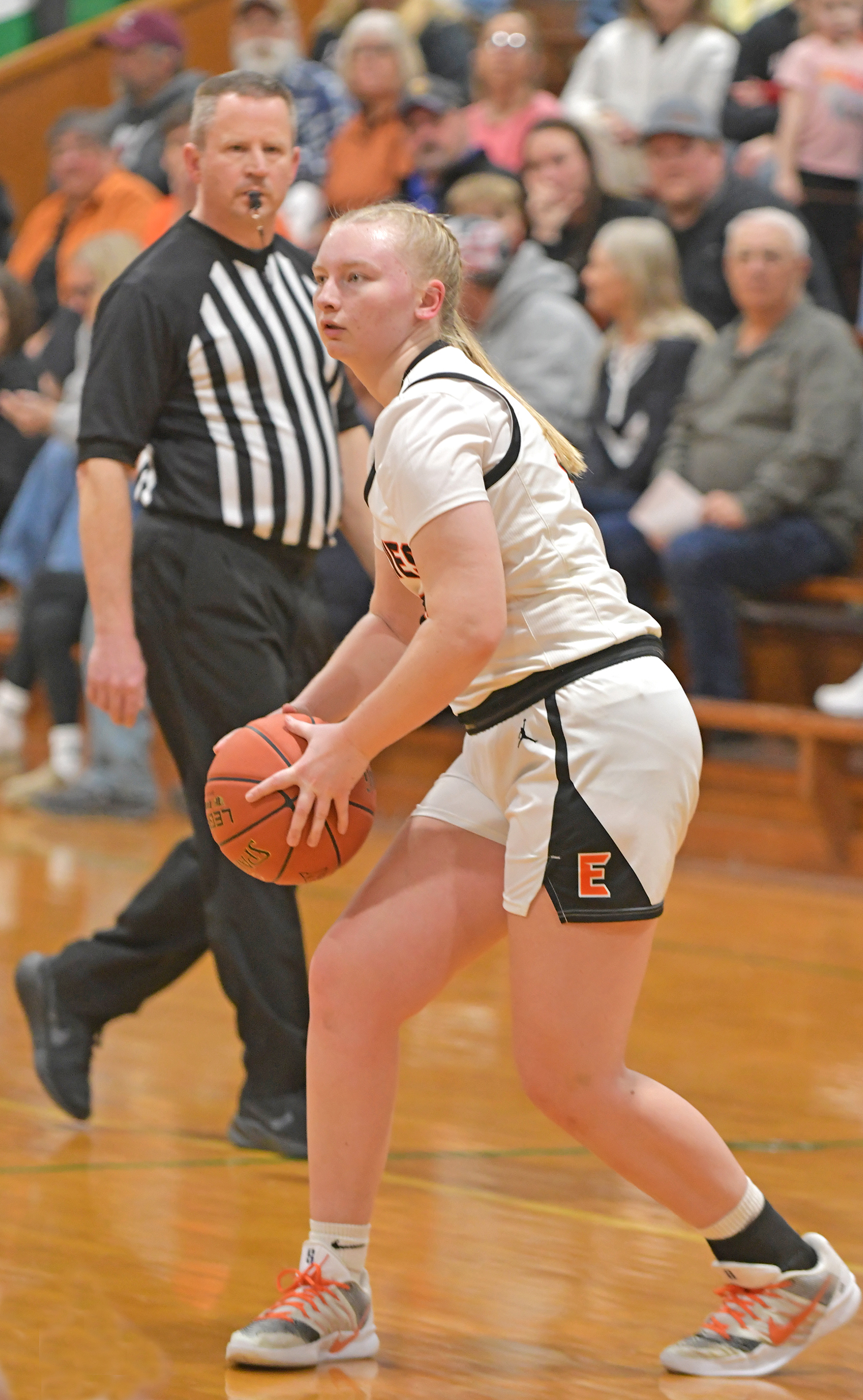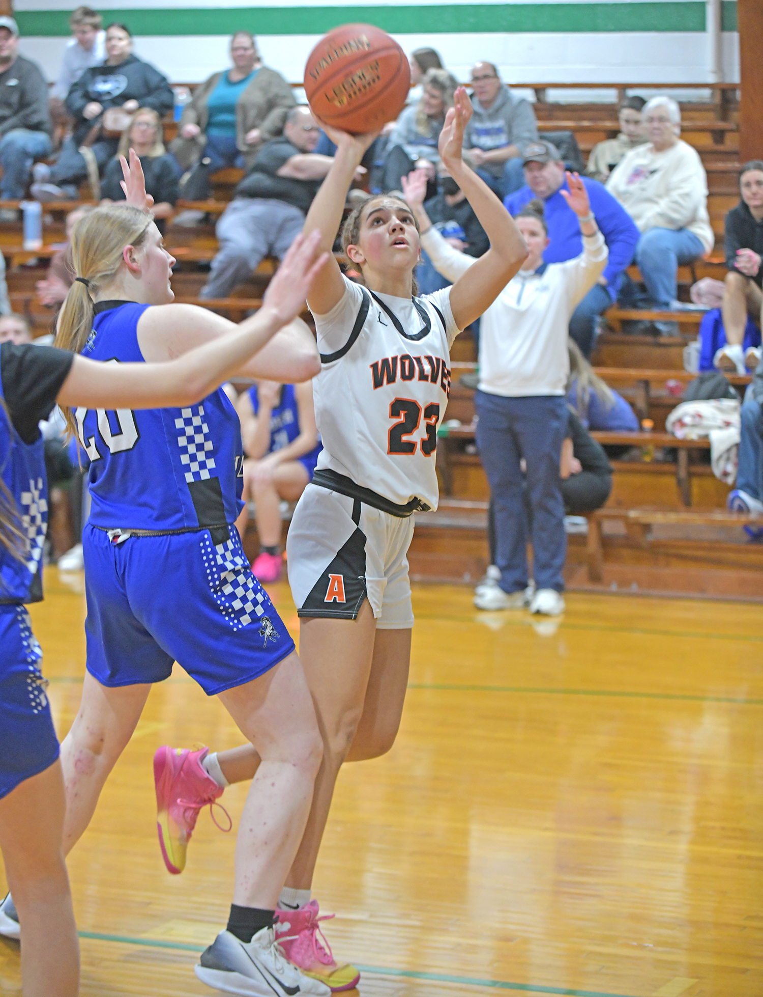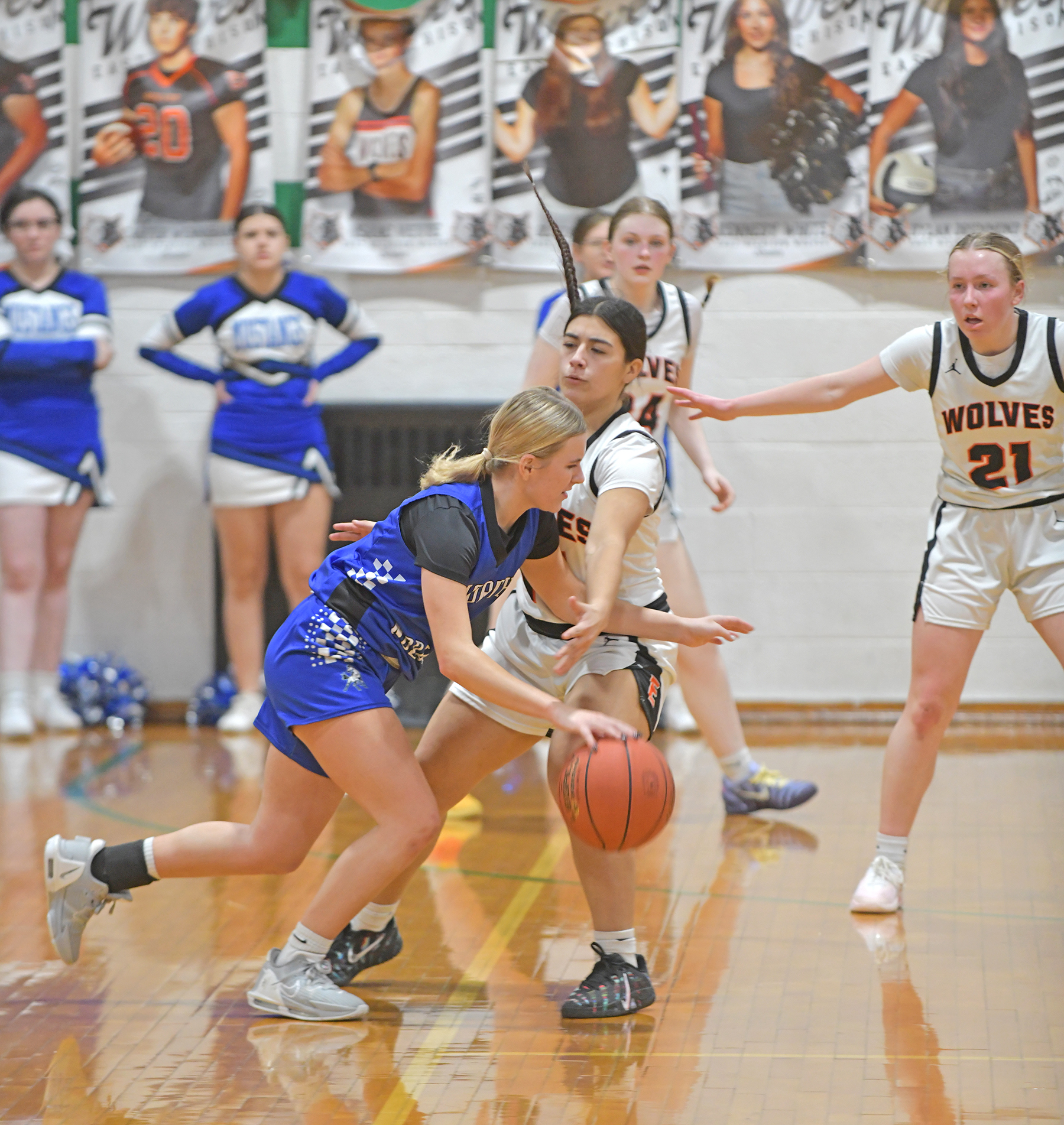 Senior Rainy Nordhausen led the Lady Wolves to victory, scoring 14 of their 37 points.