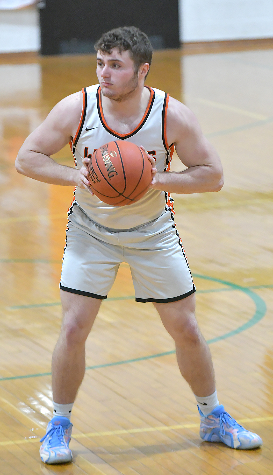 Senior Tate Johnson looks for the open man in the Wolves’ home game win over North Nodaway.