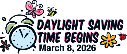 Daylight Saving Time begins Sunday, March 8, at 2 a.m. Be sure to “spring forward” the time on your clocks 1 hour before going to bed on Saturday, March 7.