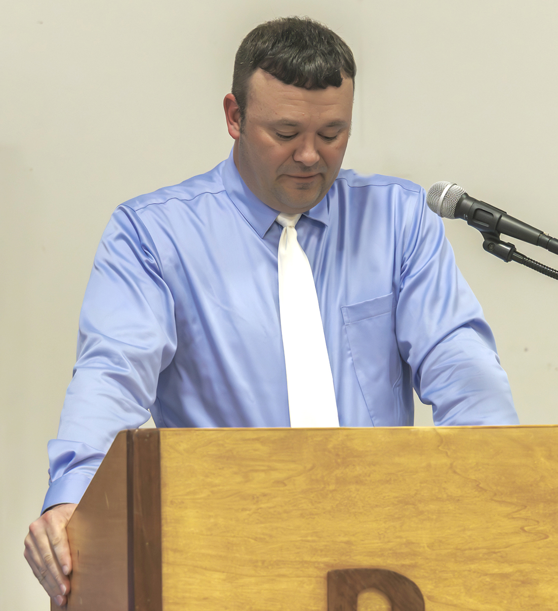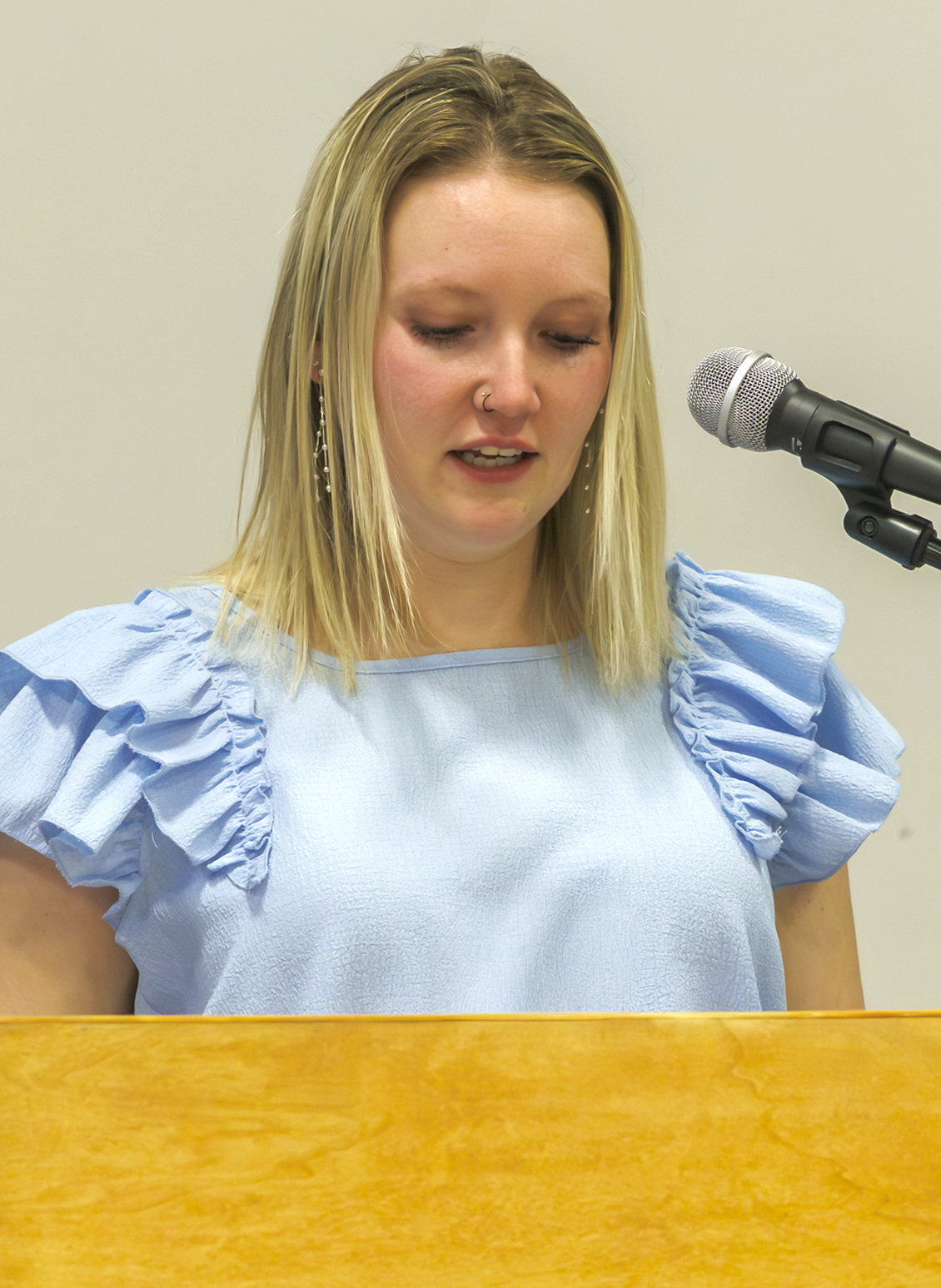 Rock Port Blue Jay Wrestling Coach Chris Gebhards recognized this year’s wrestlers, including state competitors Norah Watkins and Emma Teten and State Heavyweight Champion Ryder Herron.
