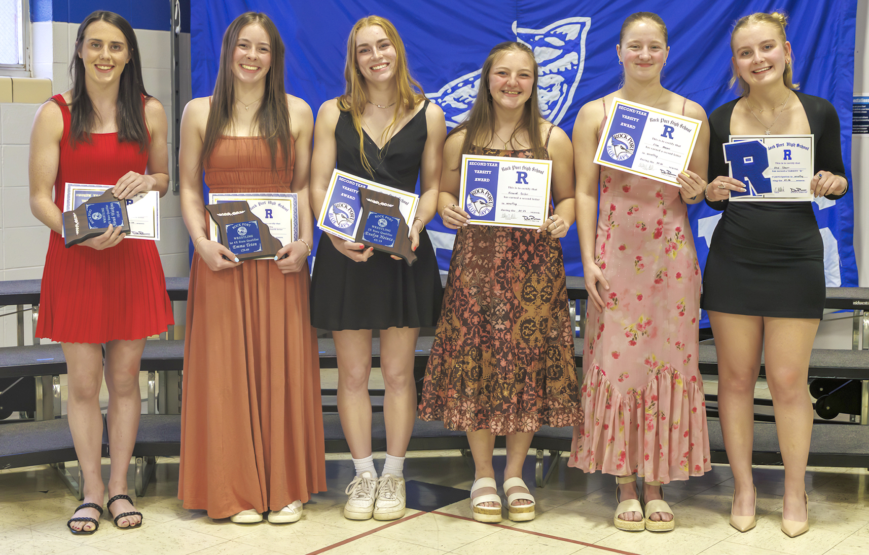 The Rock Port High School Girls’ Wrestling Team members received recognition for their 2025-26 accomplishments. Wrestlers, from left to right, were: Norah Watkins, Emma Teten, Evelyn Heintz, Kennedi Seiter, Eliza Mason, and Alexi Stoner.