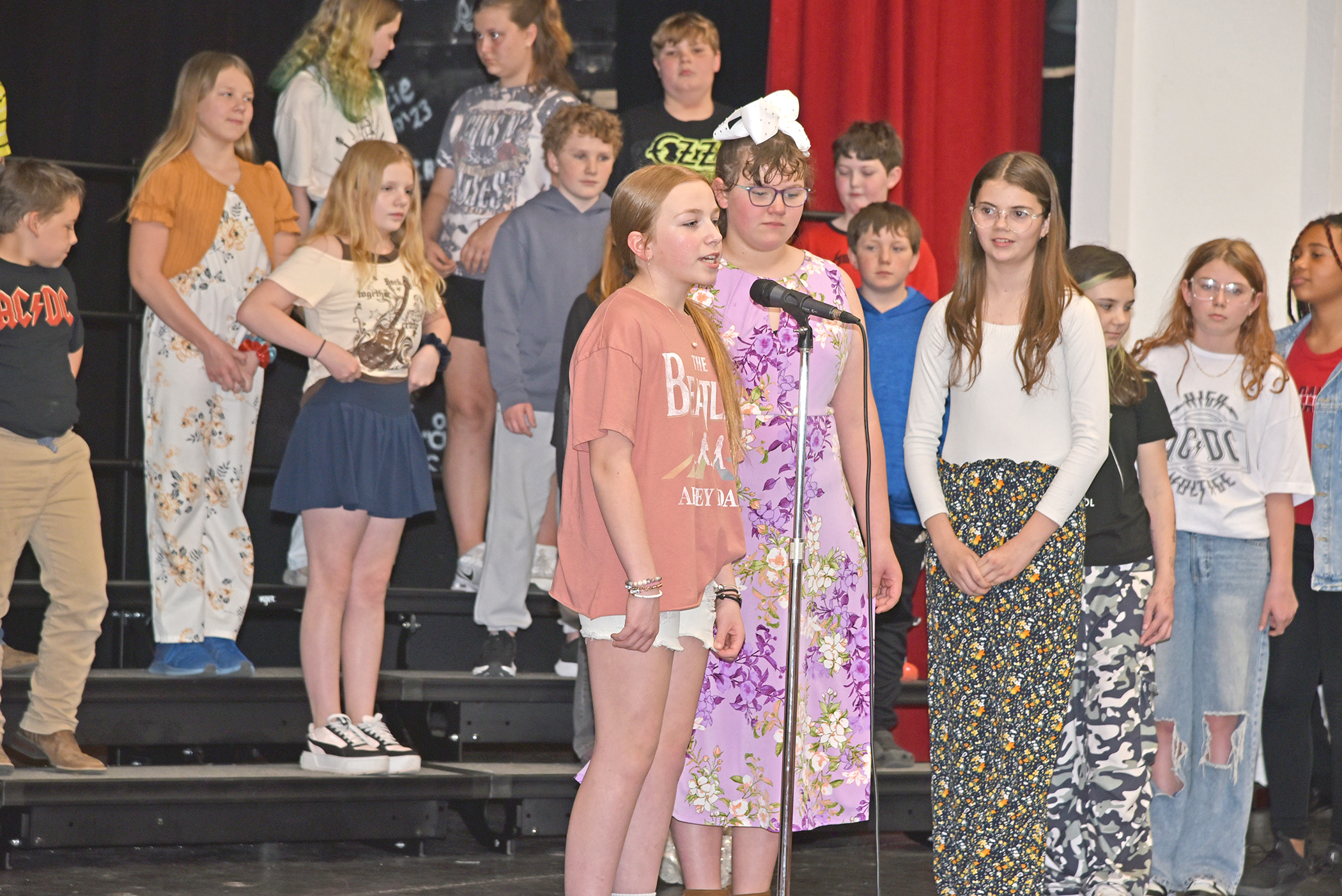 The Tarkio Elementary 4th and 5th graders brought rock and roll hits to the stage in their performance of an “I LOVE Rock & Roll” program held Thursday, April 2, 2026, in the Tarkio High School Auditorium. The students sang “Rock Around The Clock” from the 1950s, “Here Comes The Sun” from the 1960s, “Crocodile Rock” from the 1970s, “I Love Rock and Roll” and “Don’t Stop Believing” from the 1980s, and “The Middle” from the 2000s.